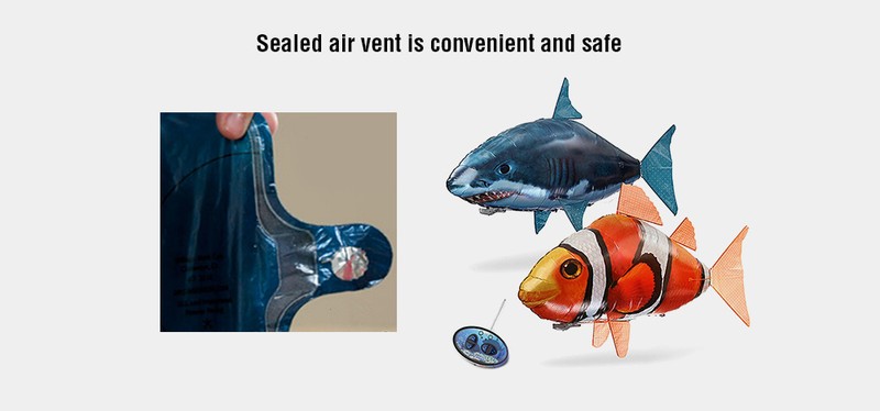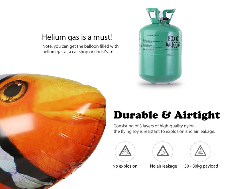 Questo squalo volante o pesce pagliaccio telecomandato vola attraverso la stanza imitando il movimento dei loro parenti sottomarini guidandosi con pinne realistiche. Un telecomando controlla gli abitanti dell'aria, muovendosi in diverse direzioni mentre evitano ostacoli come le scale. Questo è perfetto per interni e per feste in casa. Questo sarà anche un ottimo regalo!