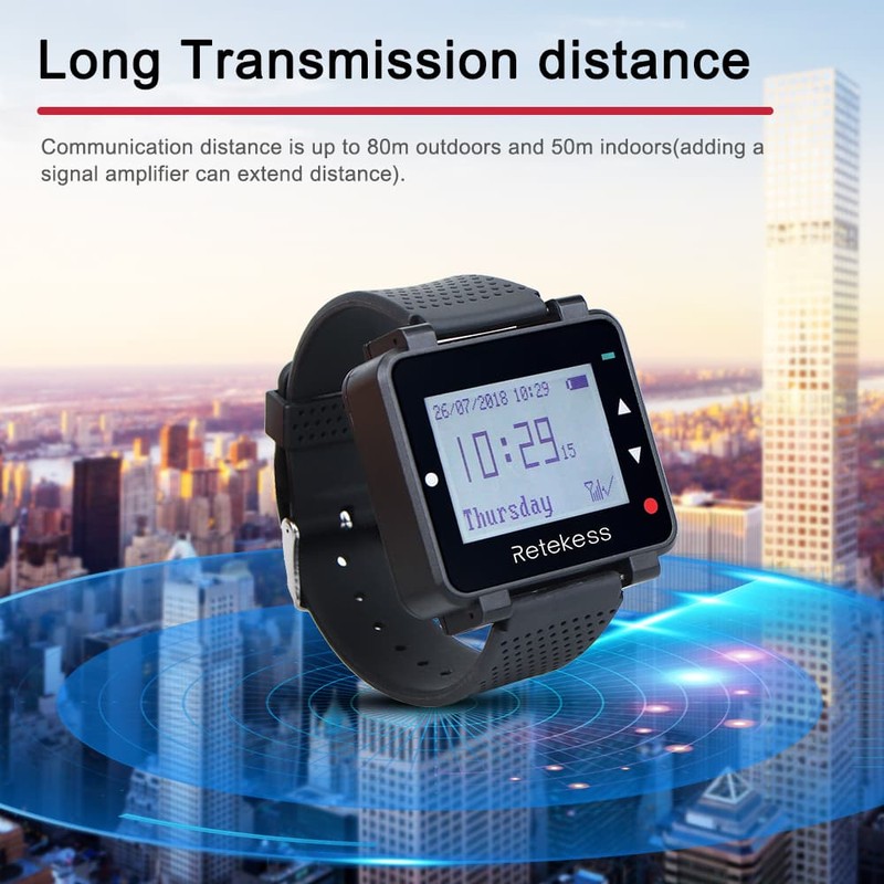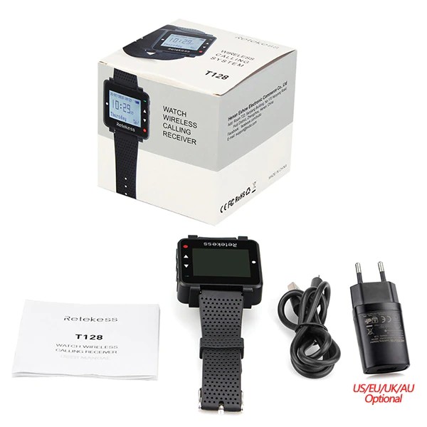 Retekess Restaurant Cercapersone Narghilè Sistema Di Chiamata Cameriere Wireless 4 Pezzi T128 Ricevitore Orologio + 30 Pezzi T117 Pulsante Di Chiamata Cafe Clinica