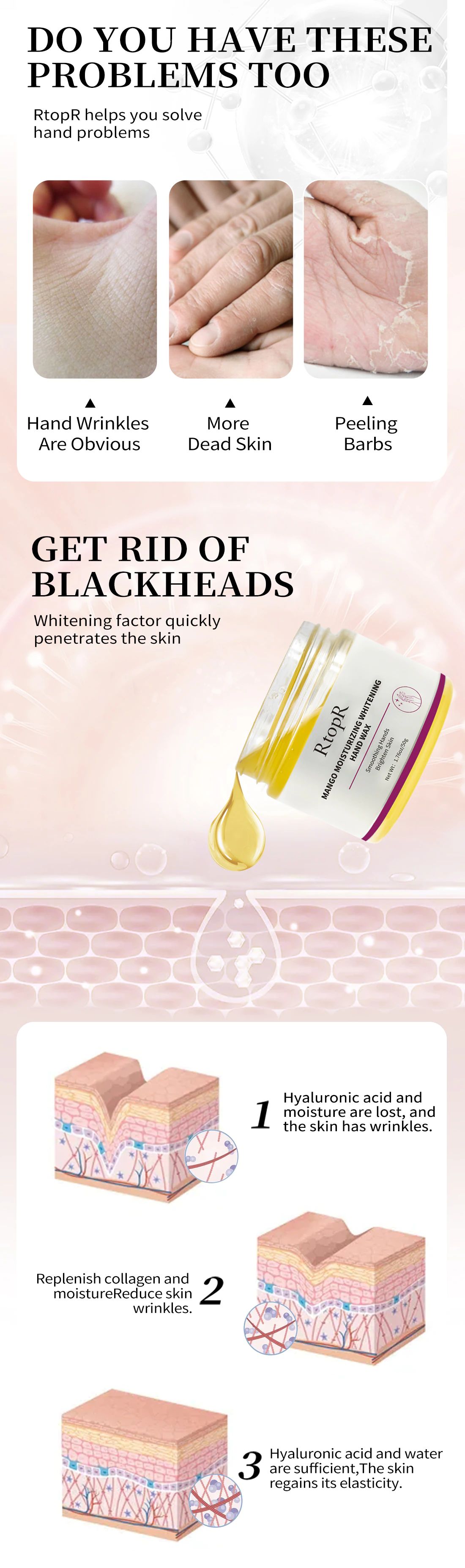 Rtopr Mango Per Le Mani Maschera Cera Per Le Mani Sbiancamento Riparazione Idratante Calli Esfolianti Riprese Crema Anti-Età Per La Pelle Delle Mani 50G