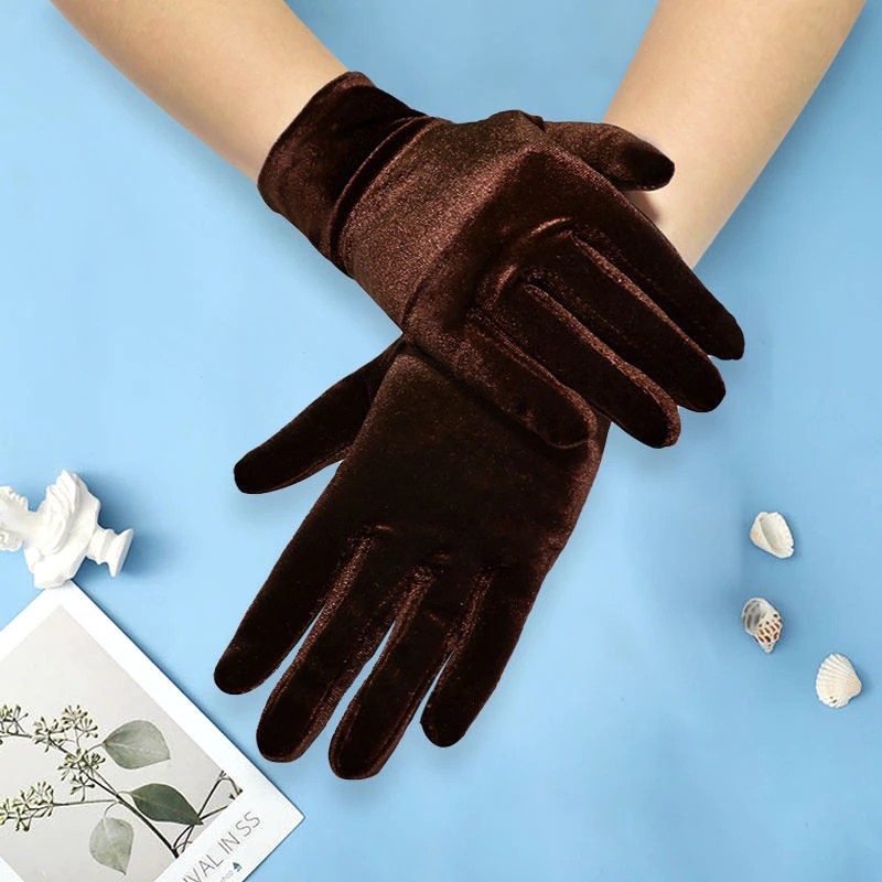 Guanti Corti In Velluto Opera Per Donna 1920S Flapper Elastico Lunghezza Polso Guanti Da Banchetto Tea Party Guanti In Costume Di Halloween