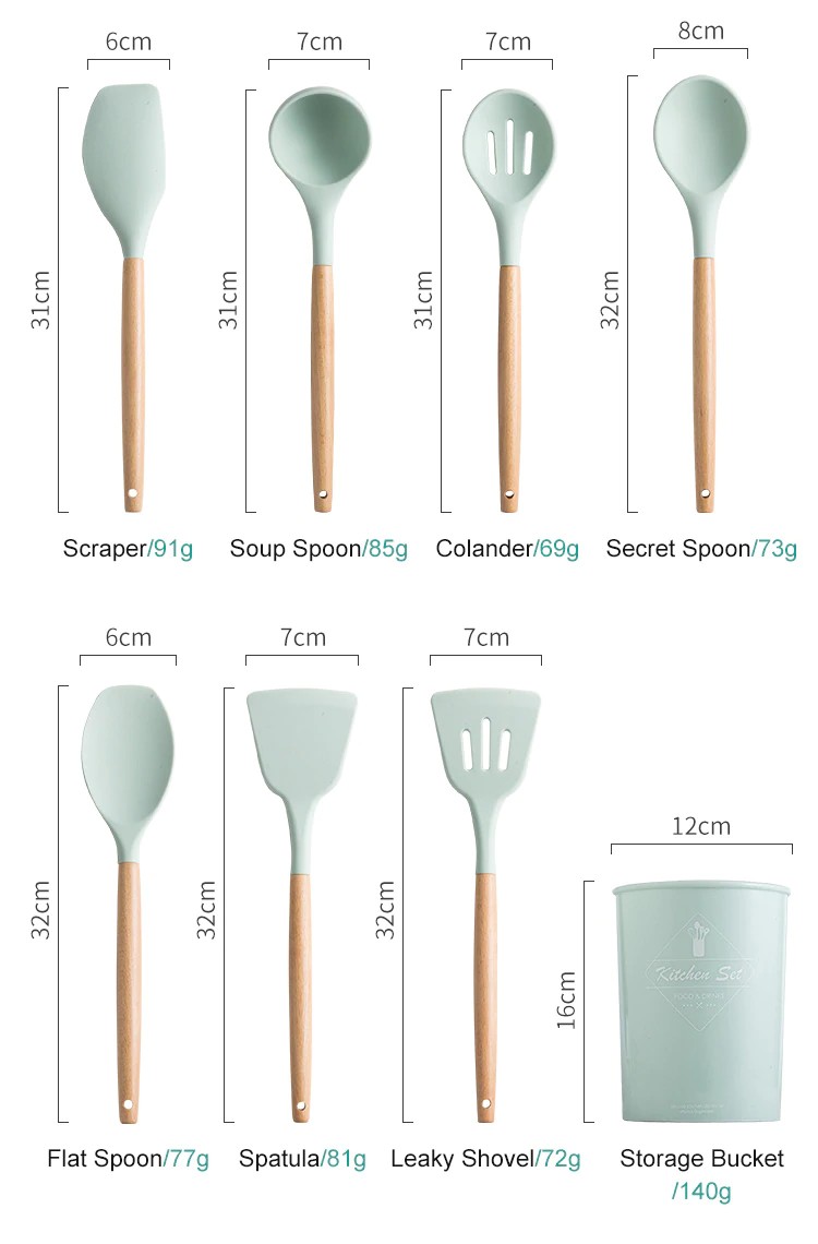 Utensili Da Cucina In Silicone Set Di Utensili Da Cucina Pentole Antiaderenti Spatola Pala Frullino Per Le Uova Manico In Legno Set Di Utensili Da Cucina
