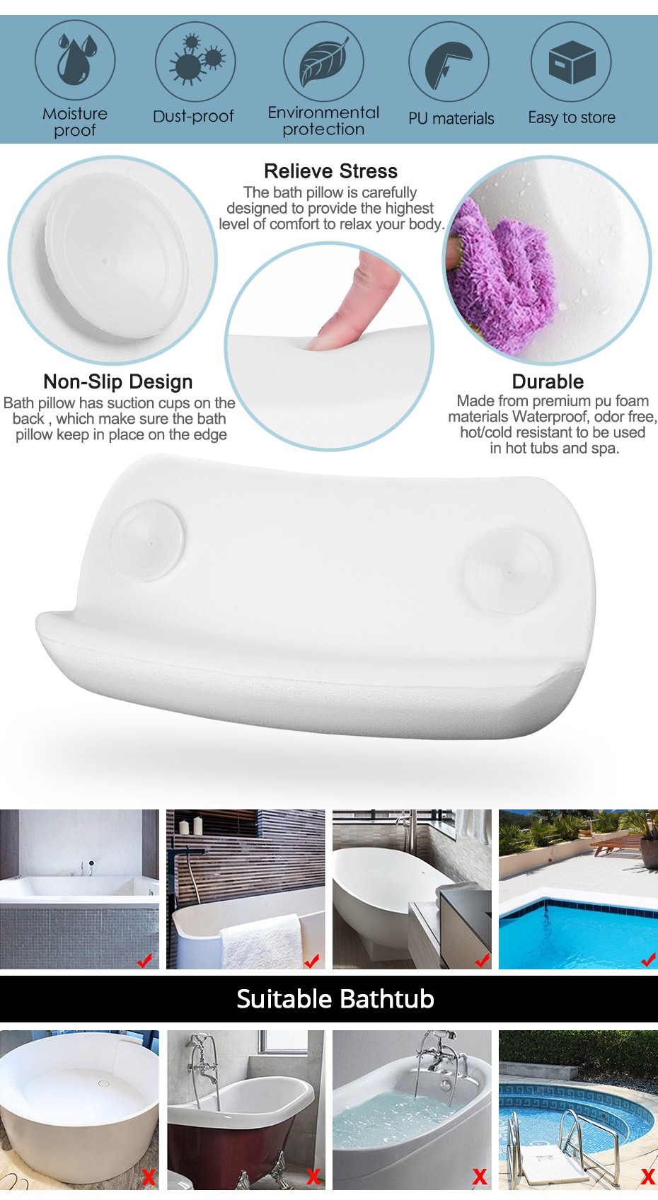 UN costume da bagno è un must per voi di avere un rilassarsi dopo un lungo periodo di tempo stanco del lavoro durante il giorno! Il nostro cuscino da bagno sarà un grande aiuto per il vostro bagno, È molto morbido per voi a fare affidamento su e hanno un riposo, perfettamente per proteggere il collo dal male del disco vasca da bagno e ti fanno anjoy il vostro bagno tempo liberamente!