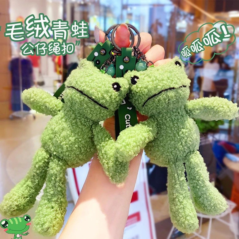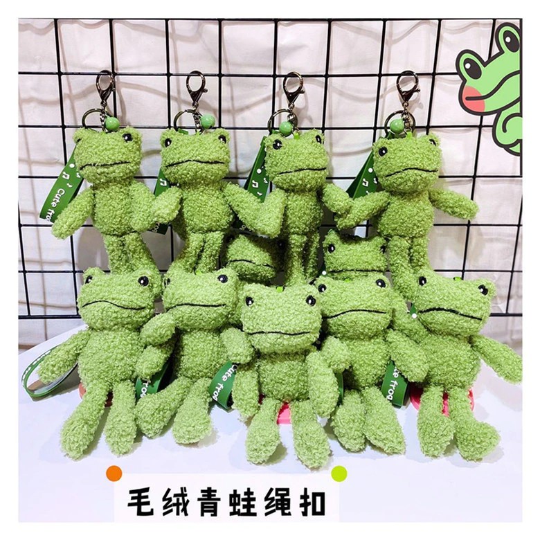 Brutto Viso Sorridente Rana Verde Peluche Portachiavi Ciondolo Personalizzato Moda Borsa Ornamenti Portachiavi Cordino Per Chiavi