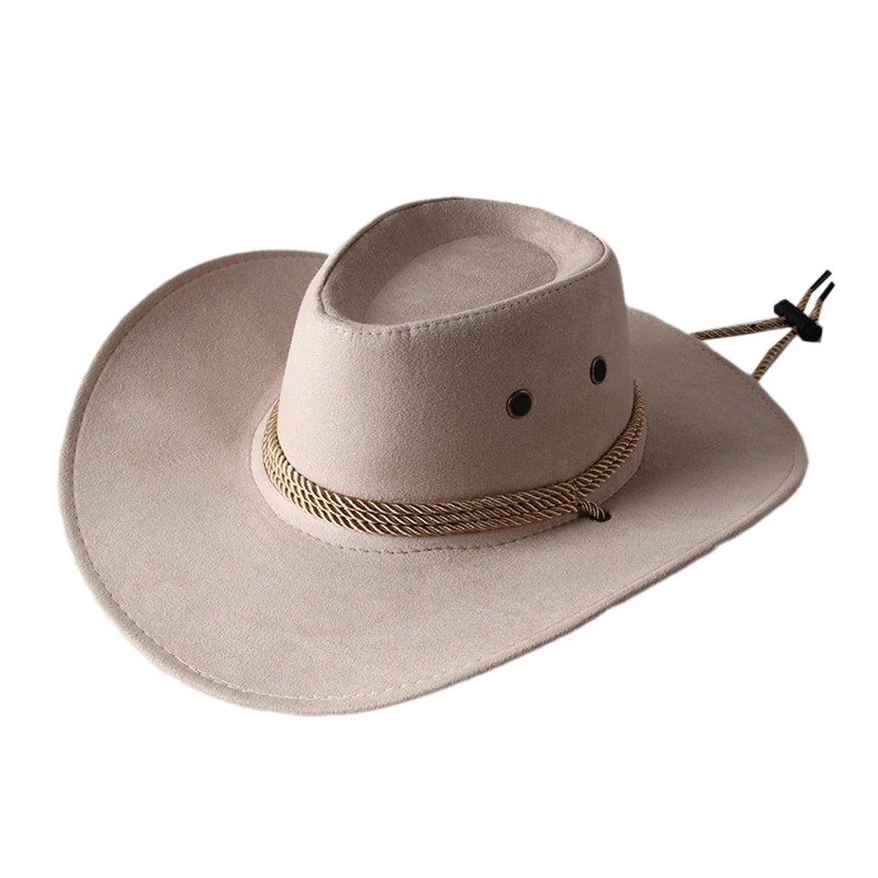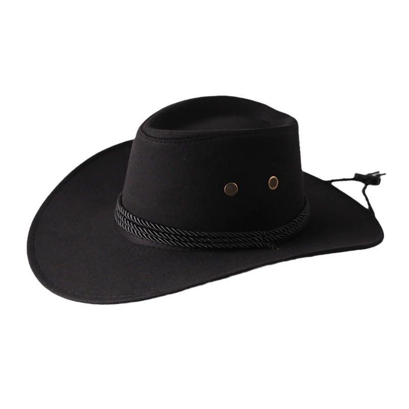 Cappello da Cowboy occidentale Unisex con corda a tesa larga cappello Jazz alla moda tinta unita antivento selvaggio per attività all'aperto fredde