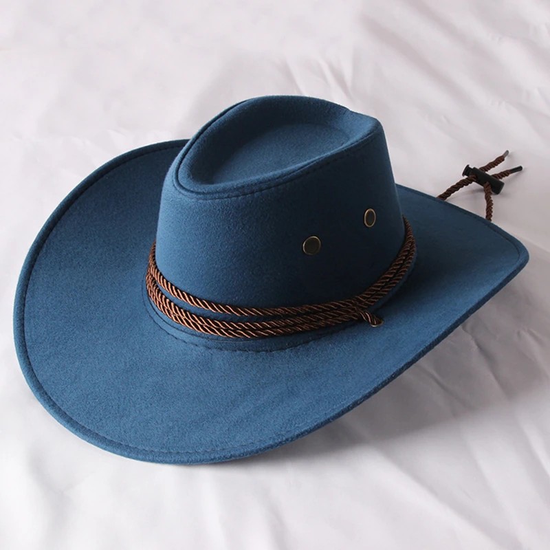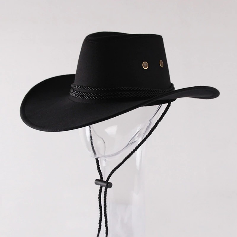 Cappello Da Cowboy Occidentale Unisex Con Corda Tesa Larga Cappello Jazz Alla Moda Tinta Unita Antivento Selvaggio Per Attività All'Aperto Fredde