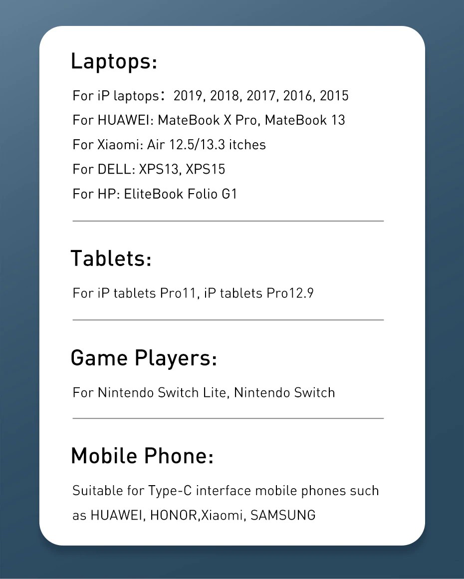 Dispositivi applicabili: Tipo-C dispositivo di interfaccia
