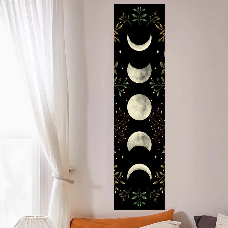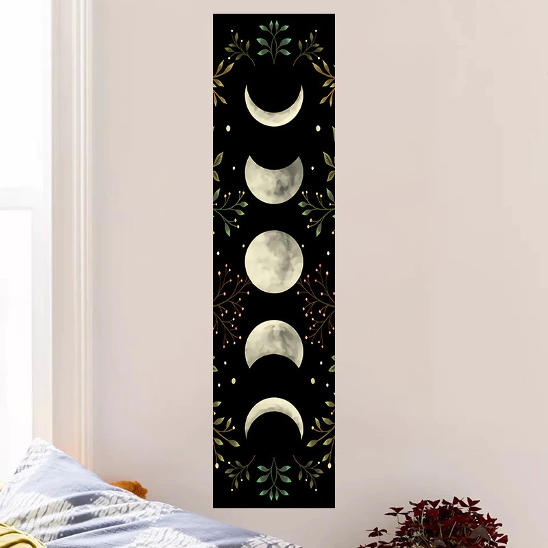 Vintage Moon Phase Wall Hanging Tapestry Mooonlight Green Olive Leaf Arazzi Neri Boho Room Wall Decor Home Decoration Wall