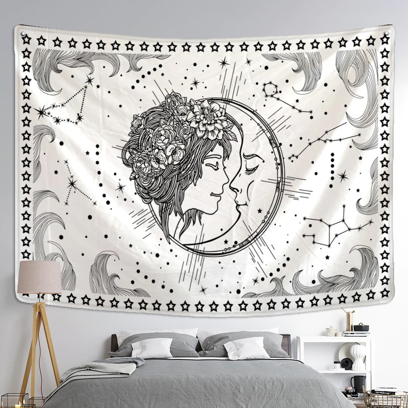 Bianco Nero Colorato Sole Luna Mandala Arazzo Appeso A Parete Celeste Arazzo Da Parete Hippie Tappeti Da Dormitorio Decor Arazzo Da Parete