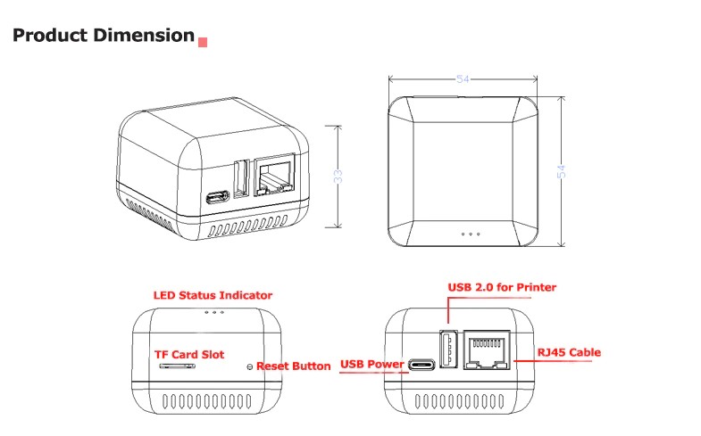 Imballaggio Articoli | 1PCS * Server di Stampa, 1PCS * Adattatore di Alimentazione, 1PCS * Guida per L'utente |