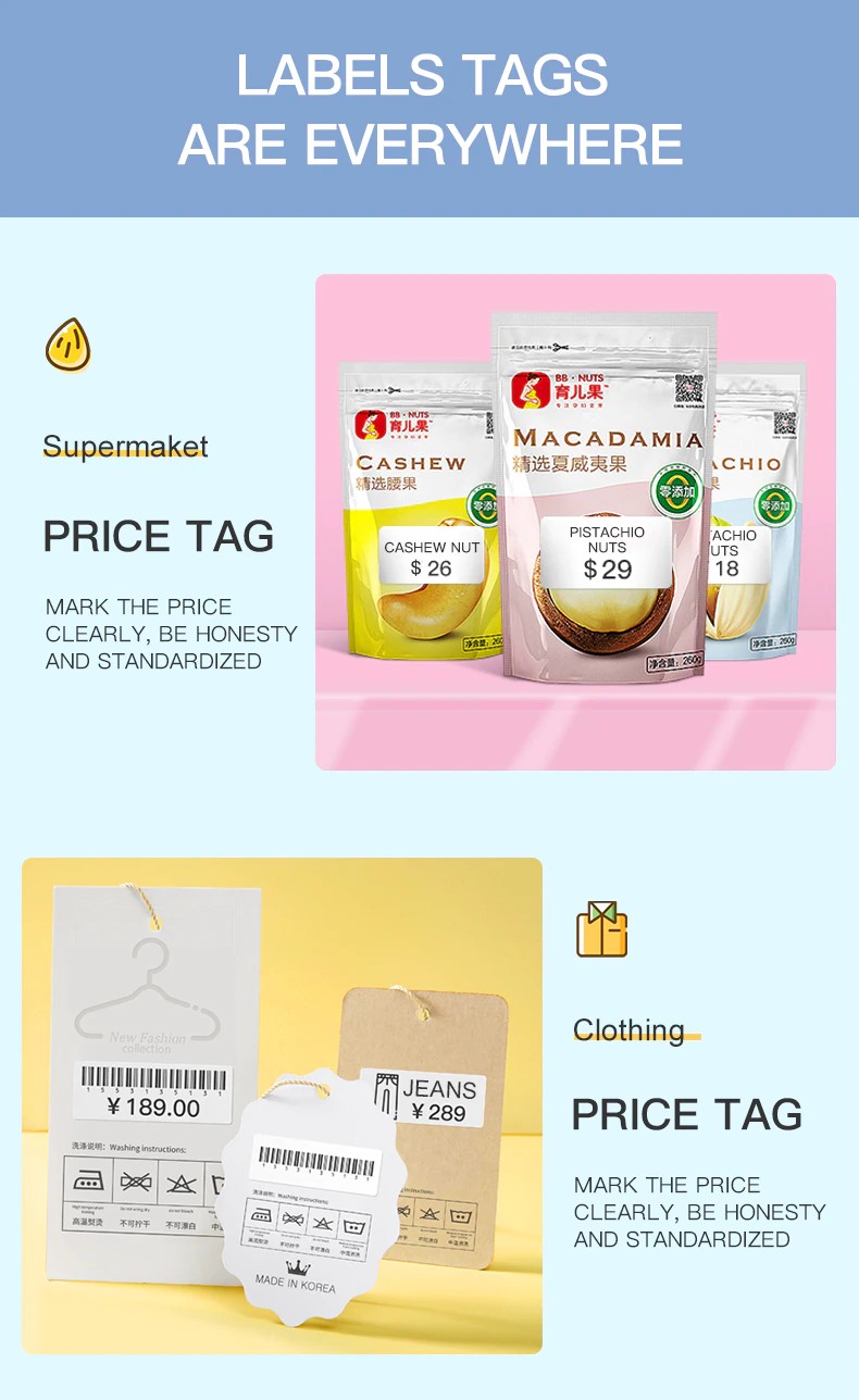 Ampiamente usato in stoccaggio a casa, ufficio, supermercato per la stampa di etichette, prezzo, peso, data, nome, ecc.