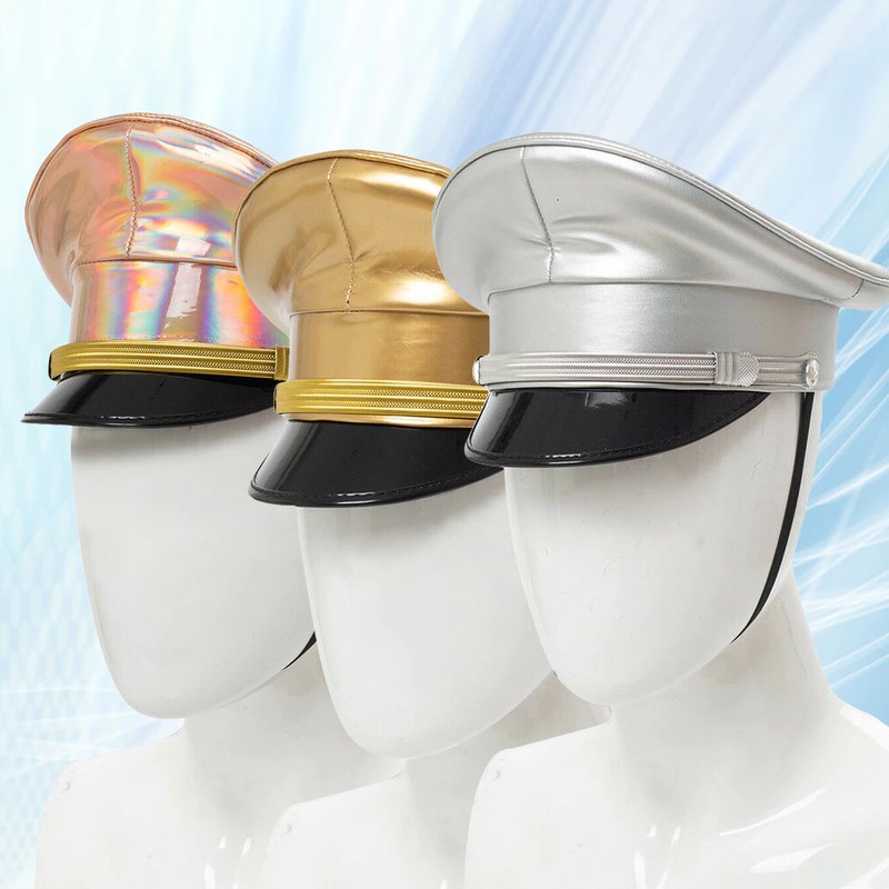 Berretto Da Capitano In Pelle Pu Da Donna Prom Performance Cappello A Tesa Larga Bar Cosplay Show Hat Personalità Berretto Berretto