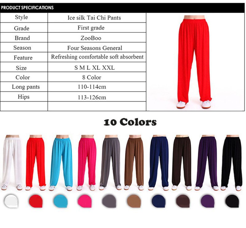 Zooboo Di Seta Del Ghiaccio Di Arti Marziali Tai Chi Pantaloni Yoga Pantaloni Acrobazie Kung Fu Ritagliata Ballo Di Fitness Ranning Pantaloni Delle Donne Degli Uomini