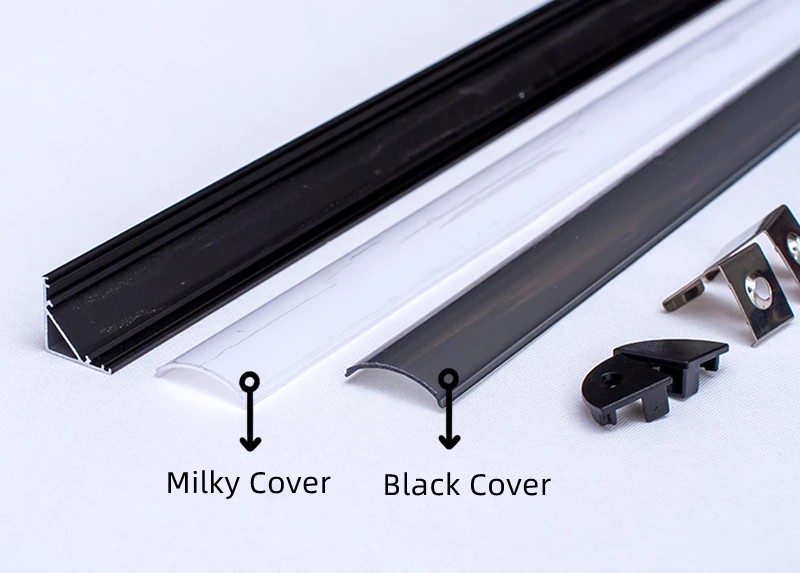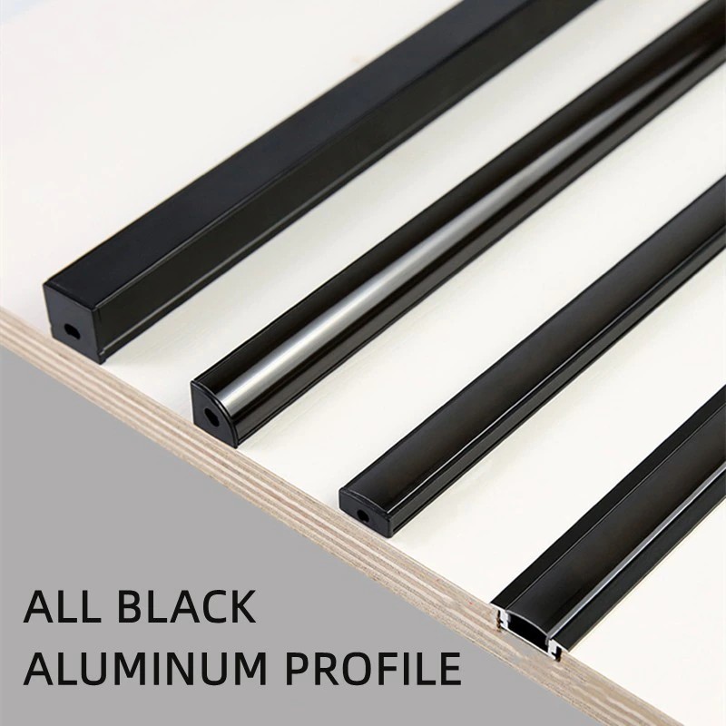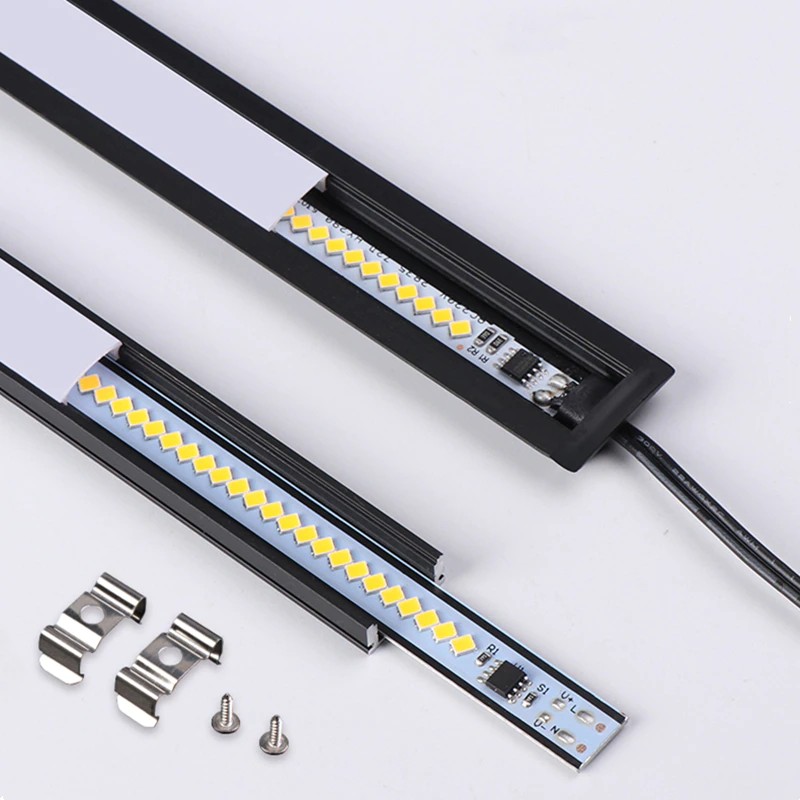 黒のハウジングとV/U/YWを備えたLEDストリップライト,アルミニウムプロファイル,埋め込み式フレームレス,乳白色チャネル,ハードバー,キャビネット用,0.5/メール/ピース