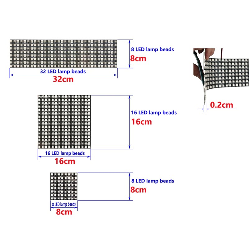 をledの量: 16*16 8*32 256ピクセル/8*8 64ピクセル
