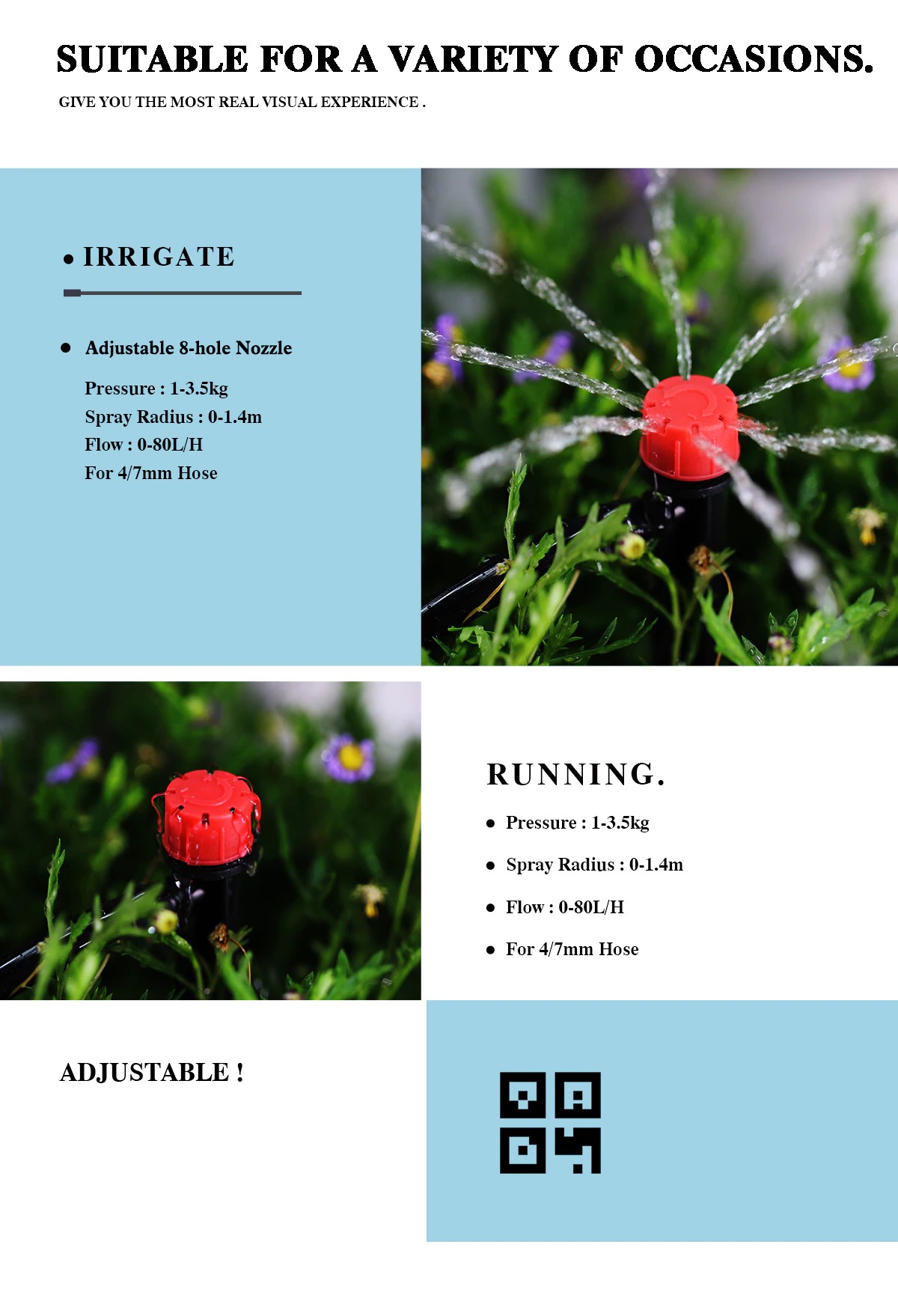 ☺のための適切な4/7ミリメートル (インナー/外径) チューブ。 各ドリッパーには、上部に8つの出口穴があり、360度の完全灌漑。