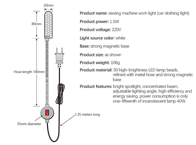 2.磁気ベースは取り付けと取り外しが簡単で、ミシンや金属面にしっかりと固定されています。