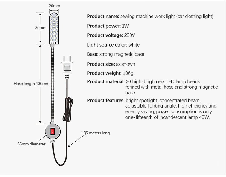 3.柔軟なネックにより、必要に応じて光を正確に調整できます。 ライトを希望の位置に簡単に設定できます。