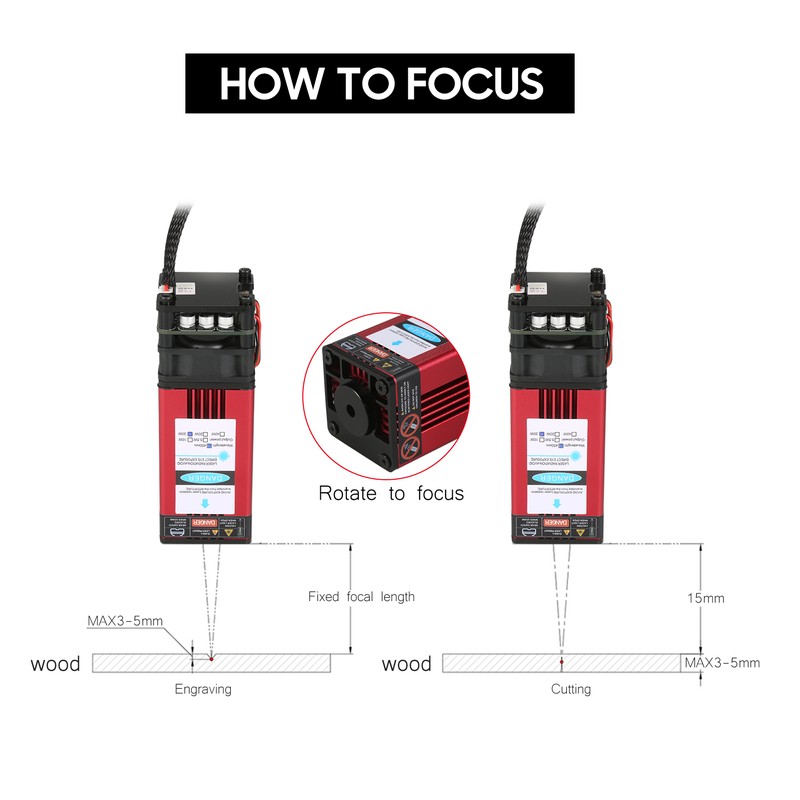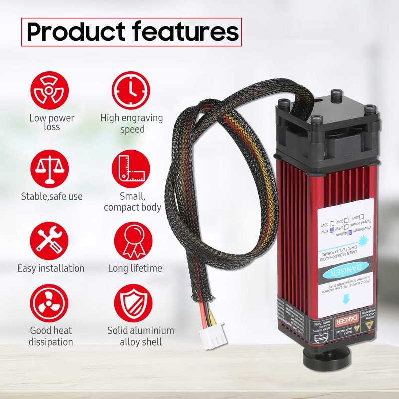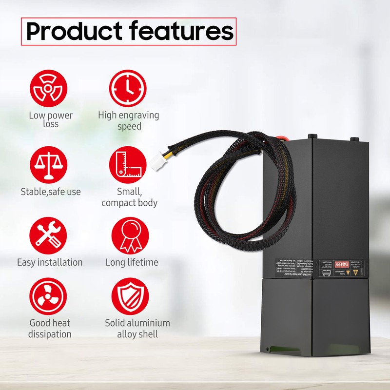 高品質素材:レーザーモジュールは、頑丈で耐久性のあるアルミニウム合金シェル、高い彫刻速度、低電力損失、安定性、長寿命を備えています。