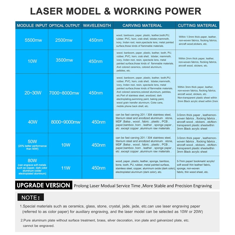 強力な能力:金属、木材、革、ゴム、アクリルなどを彫刻したり、木材やアクリルをカットしたりできます (ワット数によって能力が決まります)。