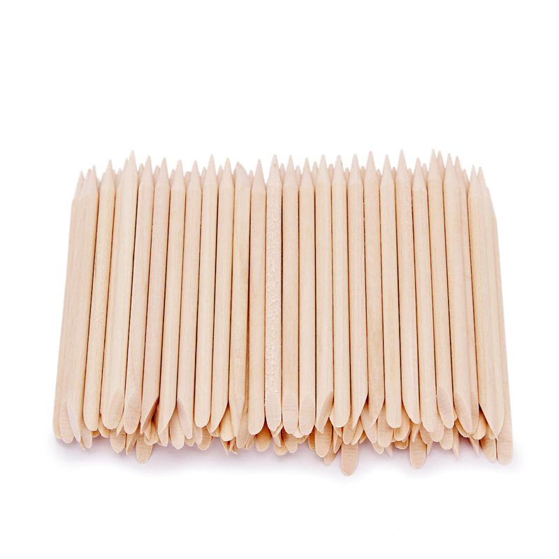 ネイルアート用のオレンジ色の木の棒,100個,キューティクルリムーバー,マニキュアケア