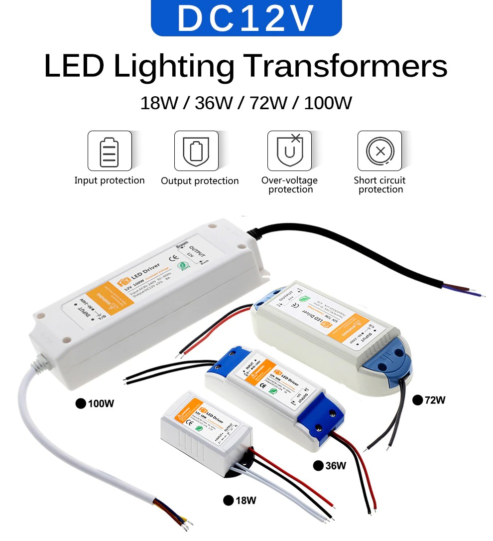 12 v電源アダプタ110v 220に12 265vの照明変圧器100ワット72ワット36ワット18ワットdc 12ボルト源ledドライバledストリップ