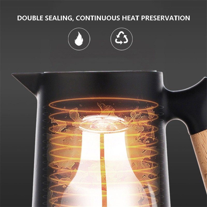 5。製品構造: 保温ケトル本体の外層にはハンドルが含まれ、ガラスの内層には電気メッキが施され、上部はカバー、下部はケトルベースです。