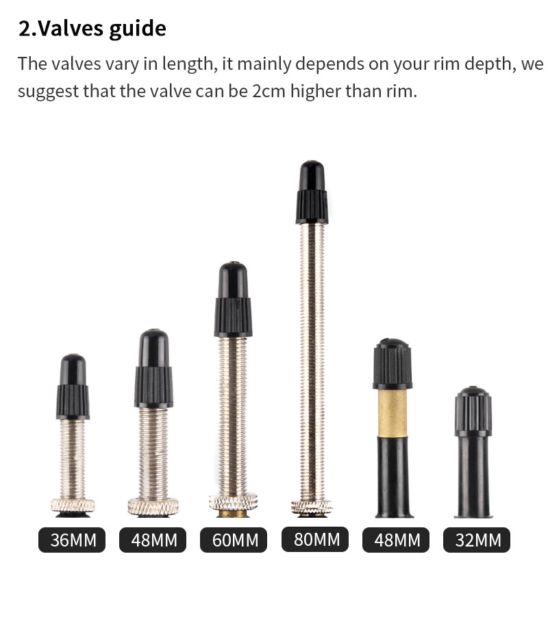 インナーチューブはさまざまなバルブ長で利用可能で、ディープセクションリムプロファイルでの使用に適しています。 深いセクションのリムがある場合は、バルブがリムの穴を通るのに十分な長さであることを確認し、ポンプを取り付けるのに十分なバルブステムが表示されたままにします。 バルブエクステンダーを購入して、バルブを短くすることができます。また、チューブで必要なことがわかっている場合は、緊急スペアとして持ち運びすることもお勧めします。