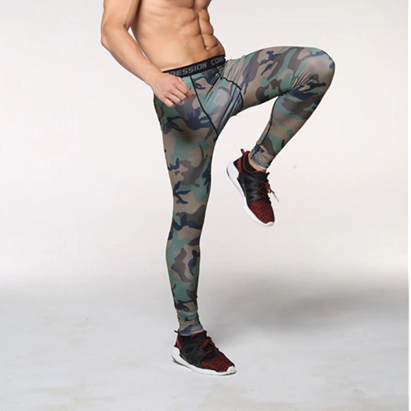 カジュアルなボディービルディングマンズズボン:男性迷彩タイツレギンス