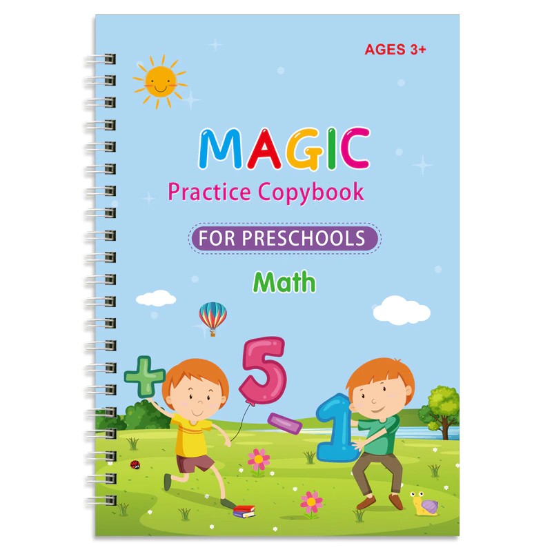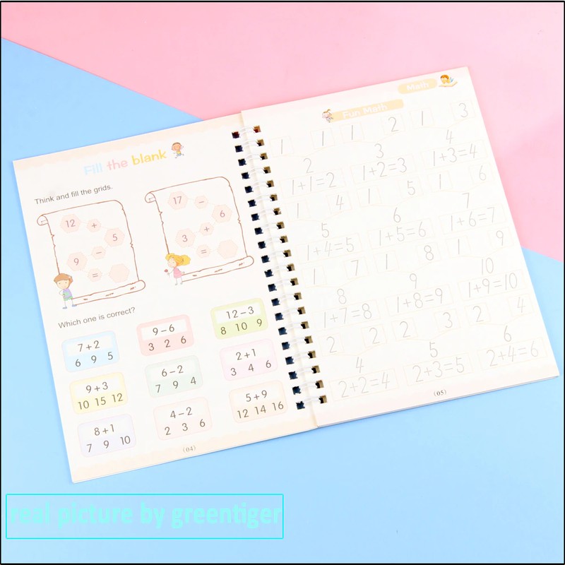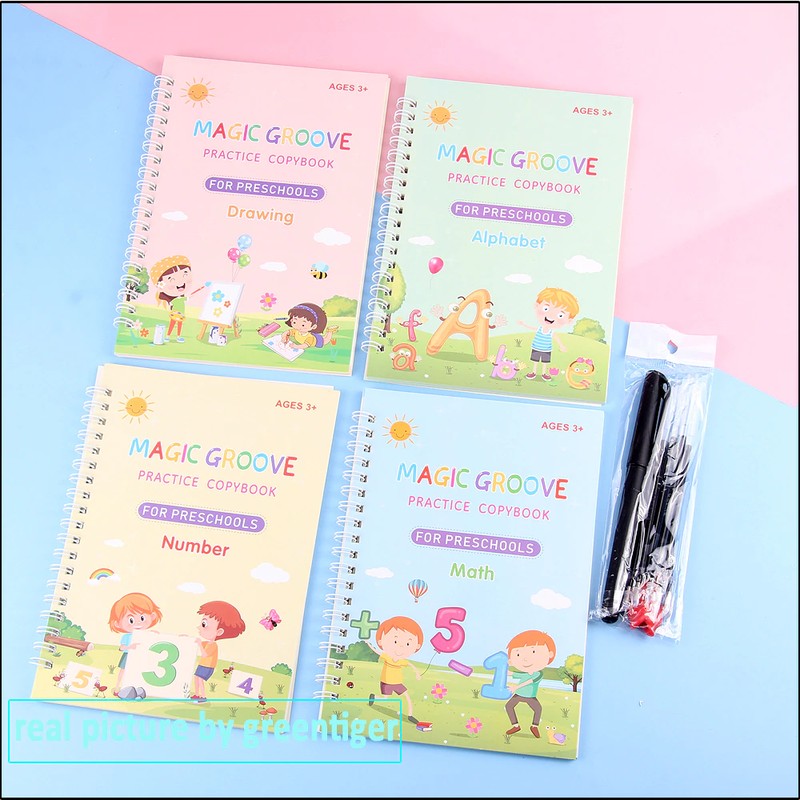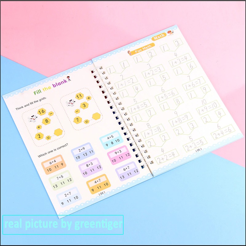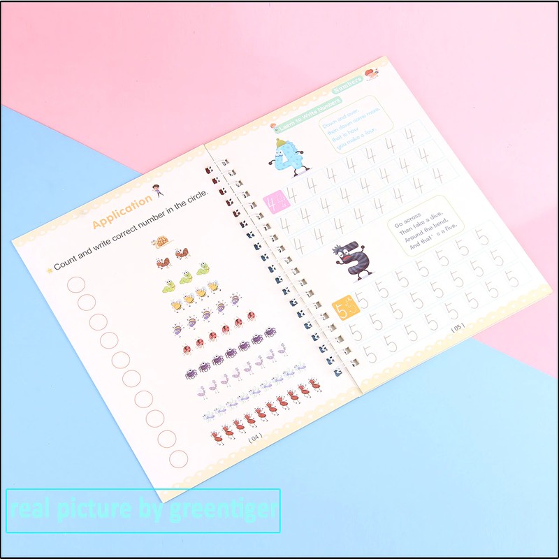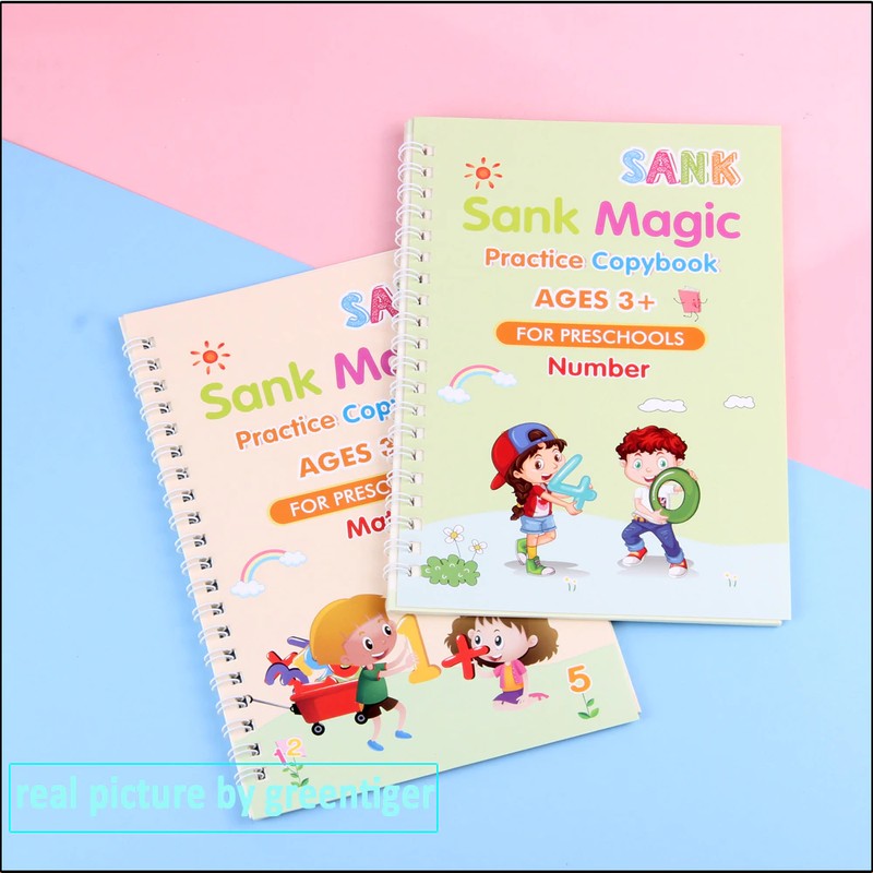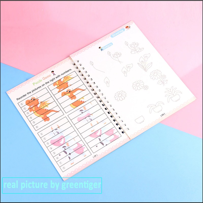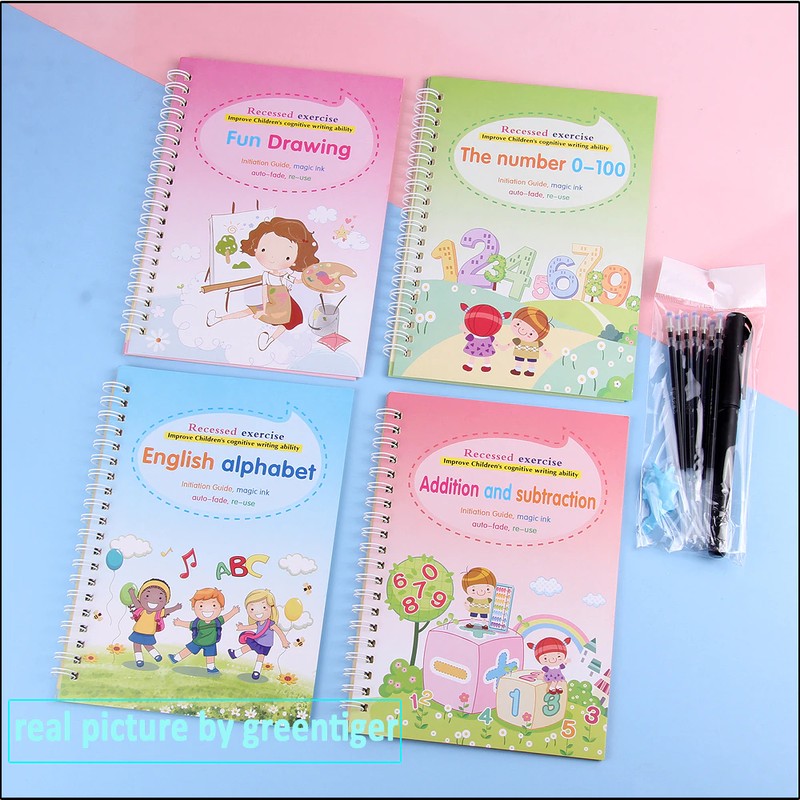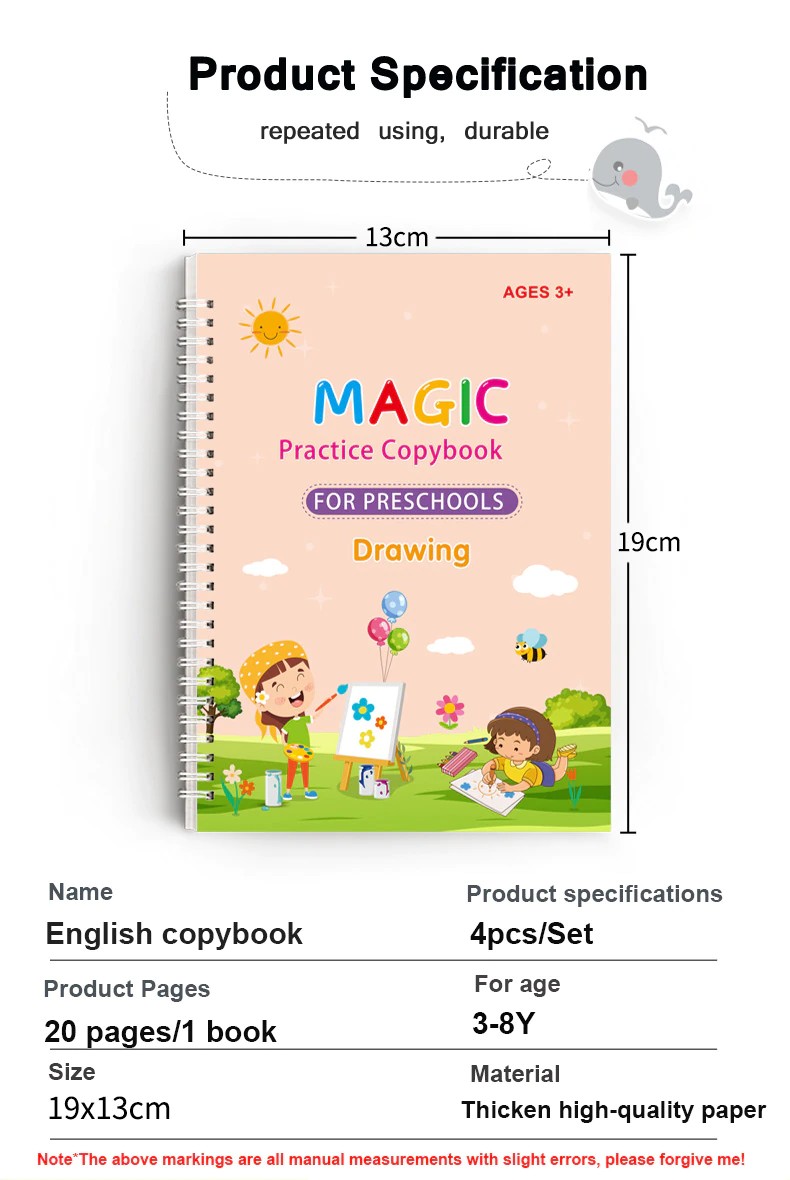 子供のための魔法の練習本,4つのコピーブック,再利用可能なステッカー,無料のワイプ,数学と英語の描画,子供のおもちゃ