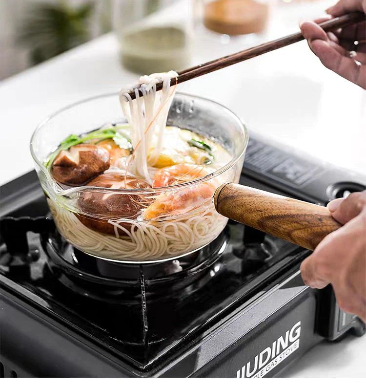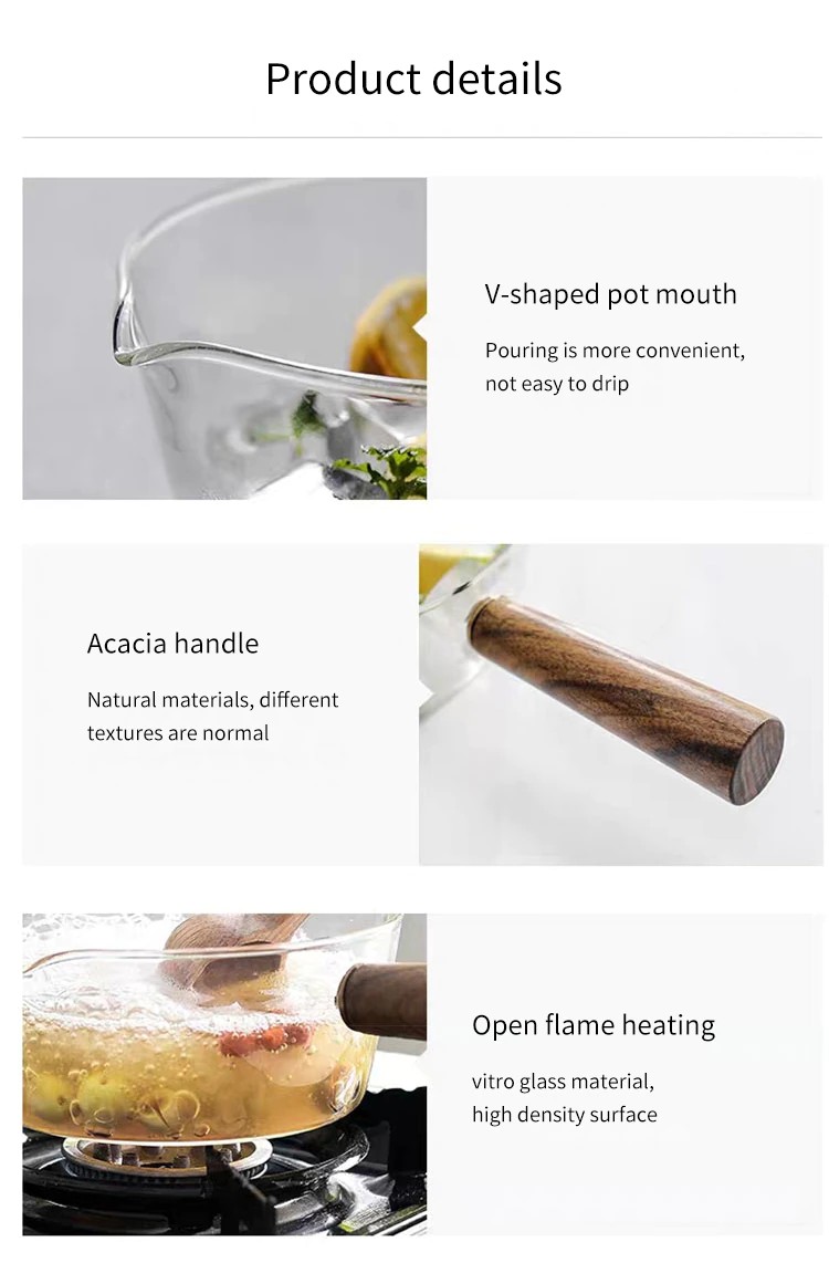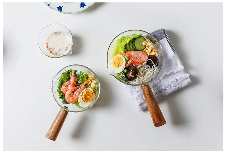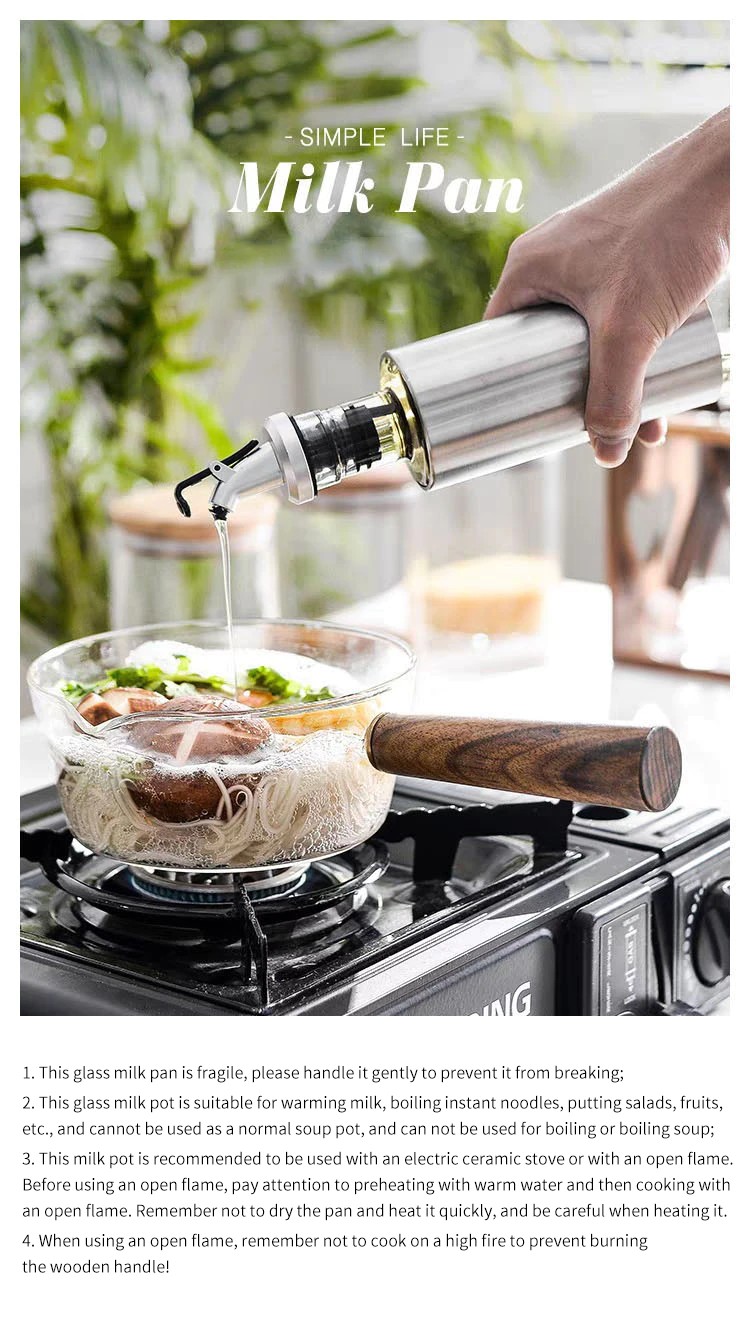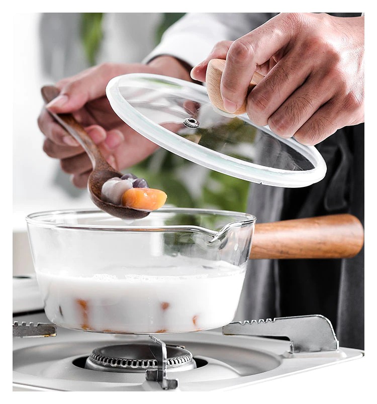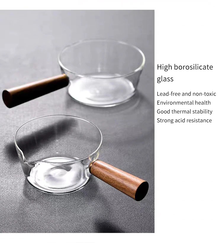 木製ハンドル付きガラス製ミルクポット,家庭用離乳食缶,ホットミルクヌードル,透明フルーツ鍋,400ml