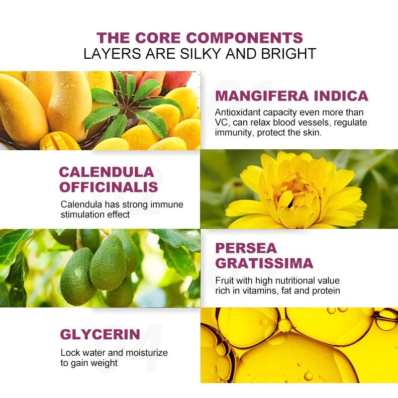 ジェルテクスチャー、マンゴーエッセンス、ヘルプソフトキューティクル、古いデッドクチンを取り除き、毛穴の中の汚れや脂っこいものをきれいにして浸透させ、肌の光沢と透過性を高め、筋肉表面を落ち着かせて修復します。肌をピュアでツヤのあるものにします。