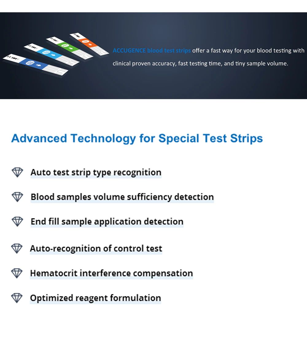 尿酸テストストリップには8つの電極が含まれており、システムは特許取得済みの技術に加えて、広範な検査を実施して製品のパフォーマンスを向上させることができます。 2つの主要な測定電極を使用して、血糖値を測定する前に完全性チェックを実施します。 残りの電極は、ストリップ抵抗の変動、hct補正、ストリップタイプ認識を補正し、適切なサンプル量がテストストリップに適用されたかどうかを検出します。