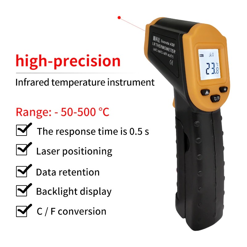 1.赤外線温度計は、オブジェクトの表面から放射される赤外線エネルギーを測定することによって、オブジェクトの表面温度を決定します