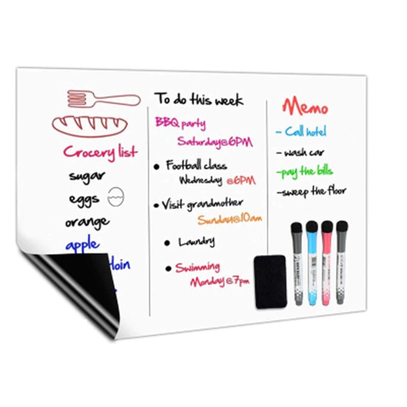 A5磁気ホワイトボード冷蔵庫用マグネットドライワイプホワイトボードマーカーライティングレコードメッセージボードリマインダーメモパッドキッズギフトキッチン