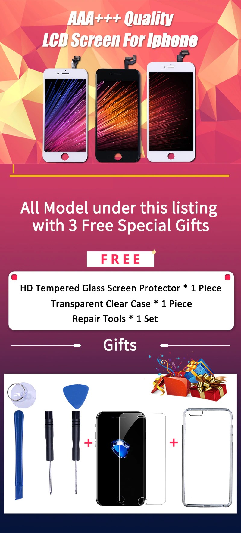 Aaa + + + lcdディスプレイiphone 6 7 8 6sプラスタッチスクリーン交換用5 5C 5s、se、no dead pixel + 強化ガラス + ツール + tpu