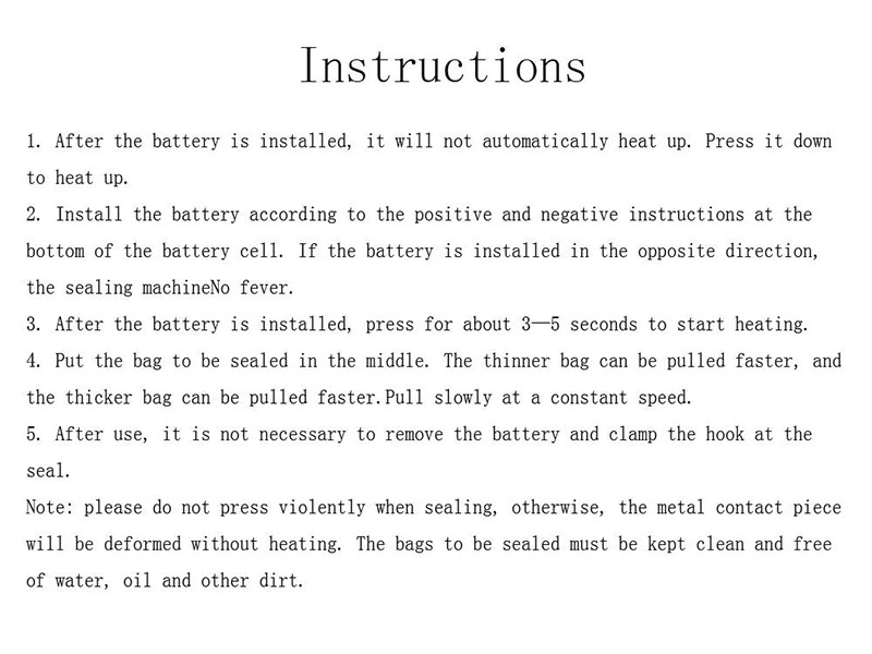 6.バッグの厚さが0.1cmを超えると密封が困難です。ゆっくりと密封したり、数回繰り返すことができます。