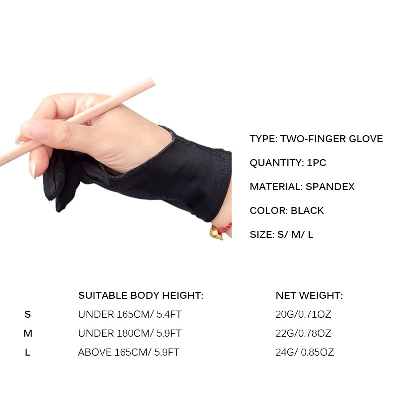 The two-finger glove can cover your ring finger, little finger and your half palm, which owns good anti-fouling performance, perfect for oil painting, watercolor, gouache, traditional Chinese painting and sketch.
