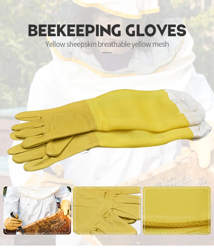 養蜂家のための黄色のシープスキン通気性メッシュ手袋,養蜂家の養蜂家のための専門家のための通気性のある手袋