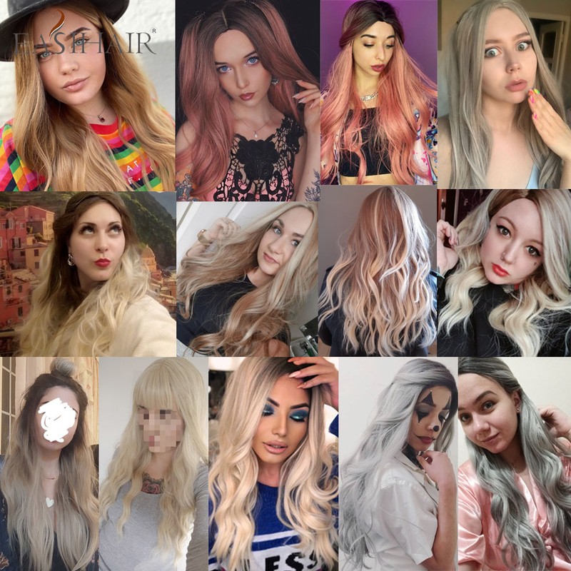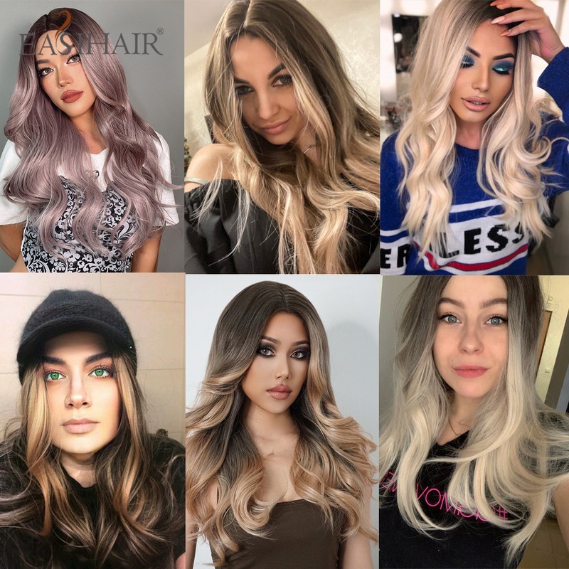 Easihair-女性用の耐熱合成コスプレウィッグ,プラチナ,ライトブロンド,シェードブラウン,ロング,ウェーブ,ミドルパート,ナチュラル