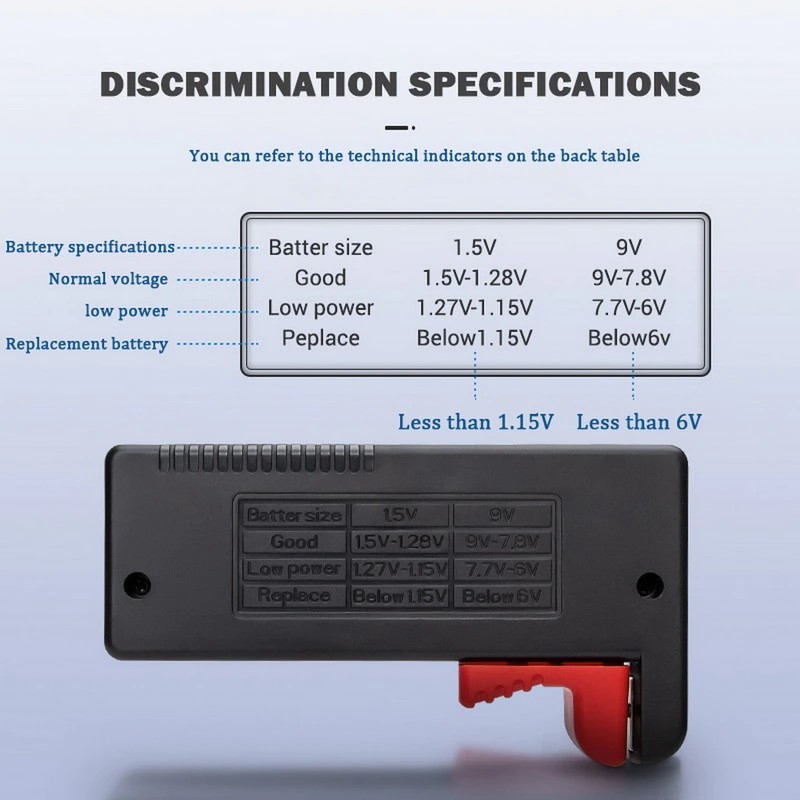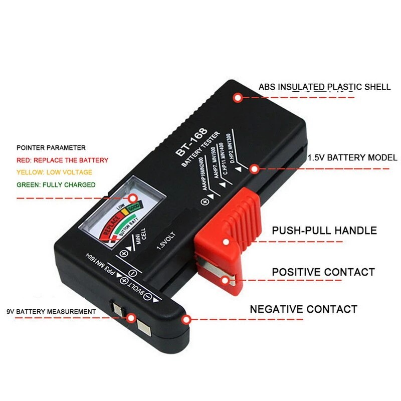 <<アプリケーション: 測定するために使用することができますバッテリーの1.5v、aa、aaaと9v、それは電気量かどうか測定は十分、ポインタに直接表示測定結果