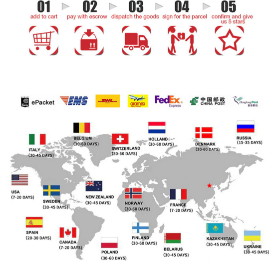 世界中に発送します。 Dhl、ups、tnt、ems経由で出荷されたドレス。 通常、出荷後5 ~ 10日で到着します。