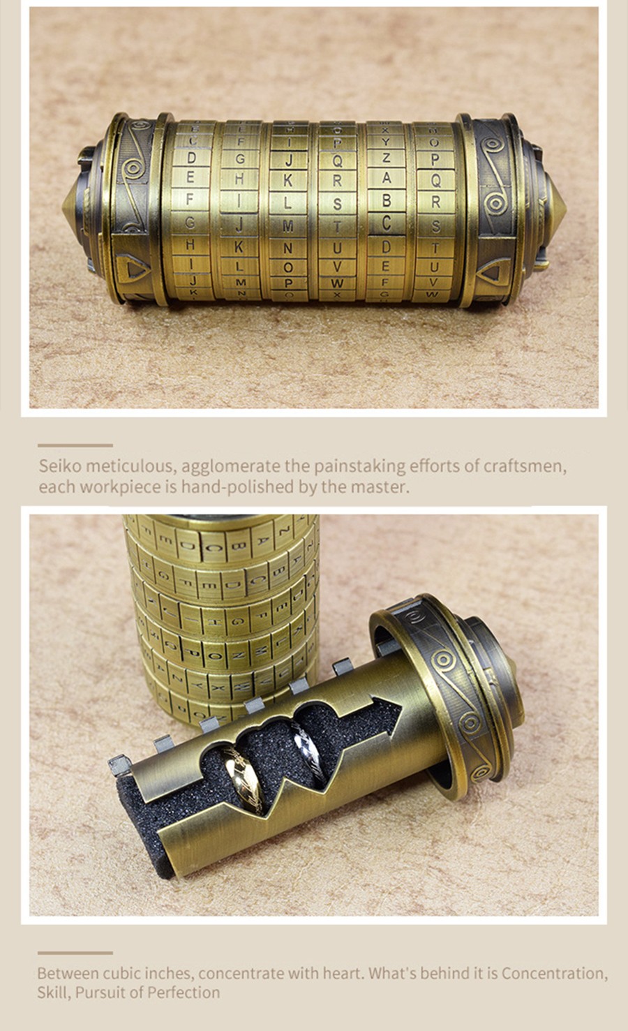 ダヴィンチコードおもちゃ金属クリプテックスロックウェディングギフトバレンタインデーギフトレターパスワードエスケープチャンバー小道具教育玩具