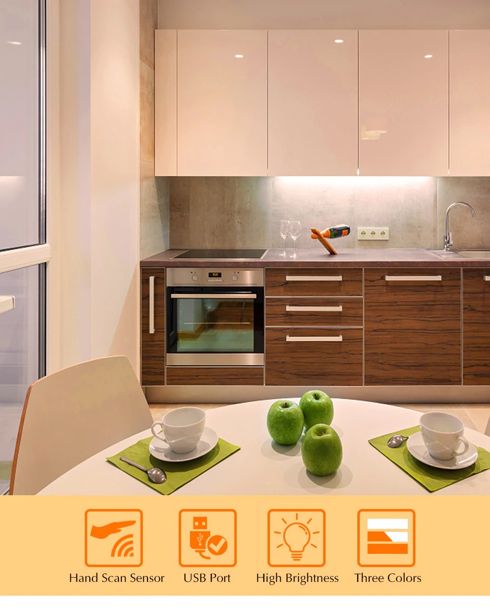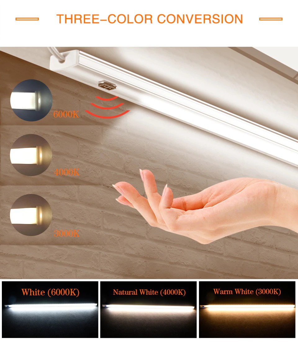 特徴: 1。ハンドスイープセンサースイッチ付きのこのライトは、手が濡れているときにスイッチに触れたくない場所、キッチン、トイレに最適なソリューションです。スイッチに手を振るだけで光を作動させ (作動距離は1〜10cm) 、もう一度手を振るとオフになります。 2.ベッドサイドキッチンとキャビネット、ワードローブ、クローゼット、階段、デスク、テーブルに最適です。 3.軽量で簡単な取り付け: 粘着ストリップやネジで好きな場所に貼り付けることができます。 仕様: スイッチタイプ: ハンドスイープセンサースイッチ 照明色: 白/暖かい白/自然白 色温度: ウォームホワイト (2800k-3200k)/ホワイト (6000k-6500k)/ナチュラルホワイト (4000-4500k) Ledタイプ: 2835SMD 長さ: 30 /40 /50センチメートル 電圧: DC 5v Powered by: USBケーブル USBケーブル長: 約1m 検出距離: 1-10 cm Cri: >85 材料: アルミニウム合金 + ABS