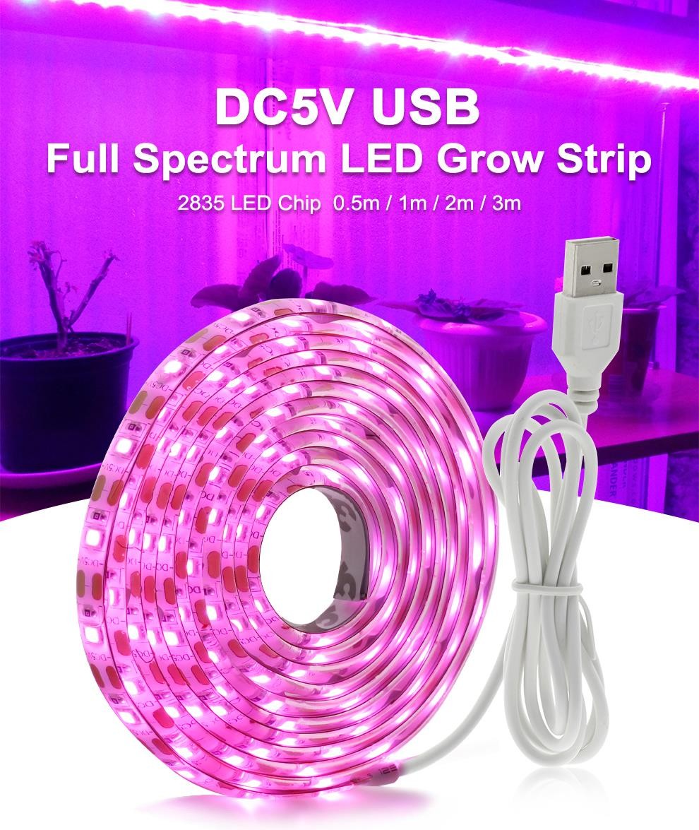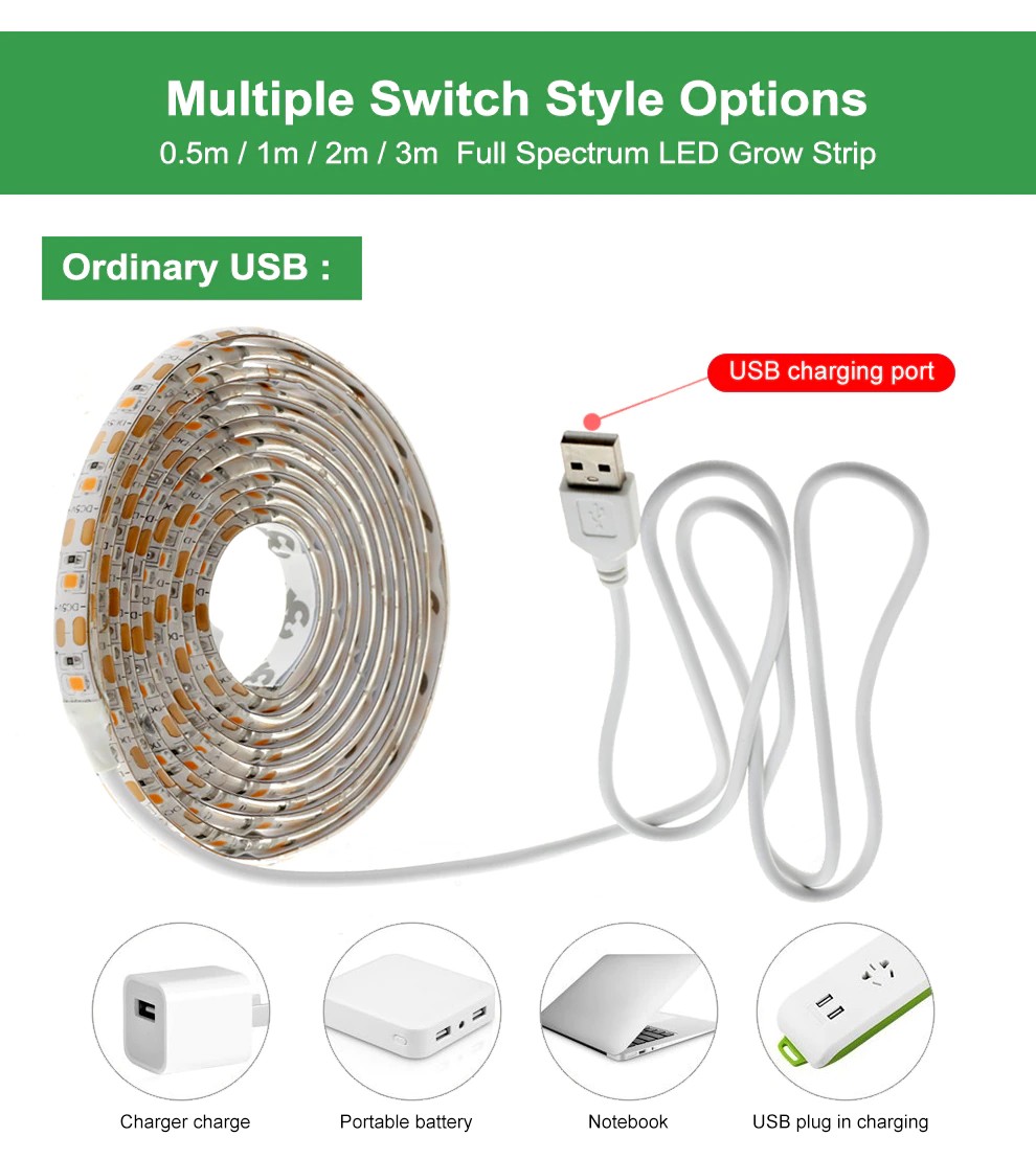 フルスペクトルグローライト5vusbledストリップ0.5m 1m 2mハンドスイープセンサー/タッチスイッチ成長ledテープライト。