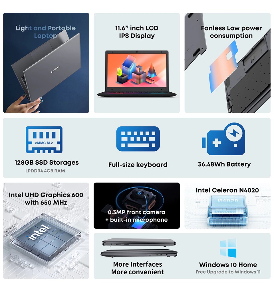 ![]() 基本情報 | ブランド: chuwi モデル: herobook空気 Os: win10ホーム20r2 Cpu: Intel Celeronプロセッサn4020 Core: デュアルコアデュアルスレッド、1.1ghz-2.8ghz GPU: Intel UHDグラフィックス600, 650MHz |