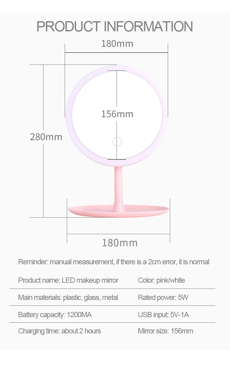 【お肌のマジックミラー】ledメイクアップミラーは高精細高精細銀メッキミラーで手作りされており、光は自然で柔らかく、眩しくありません。 肌の本当の状態を見て、あなたのメイクを毎日繊細で自然に見せてください。
