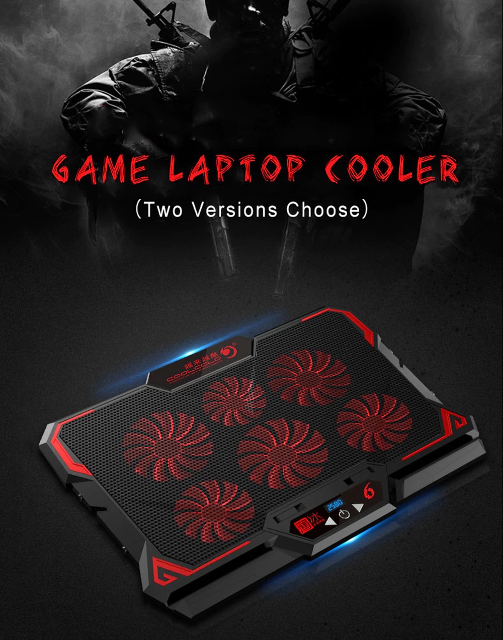 Coolcold 17インチゲーミングラップトップクーラー6ファンledスクリーン2つのusbポート2600ラップトップ冷却パッドノートブックスタンド (ラップトップ用)