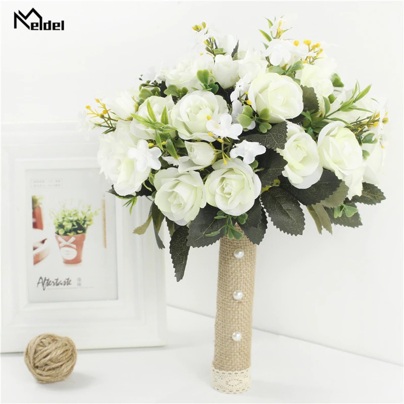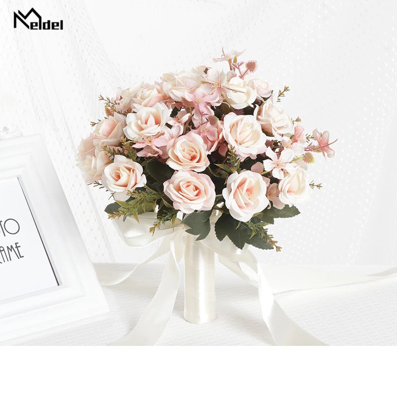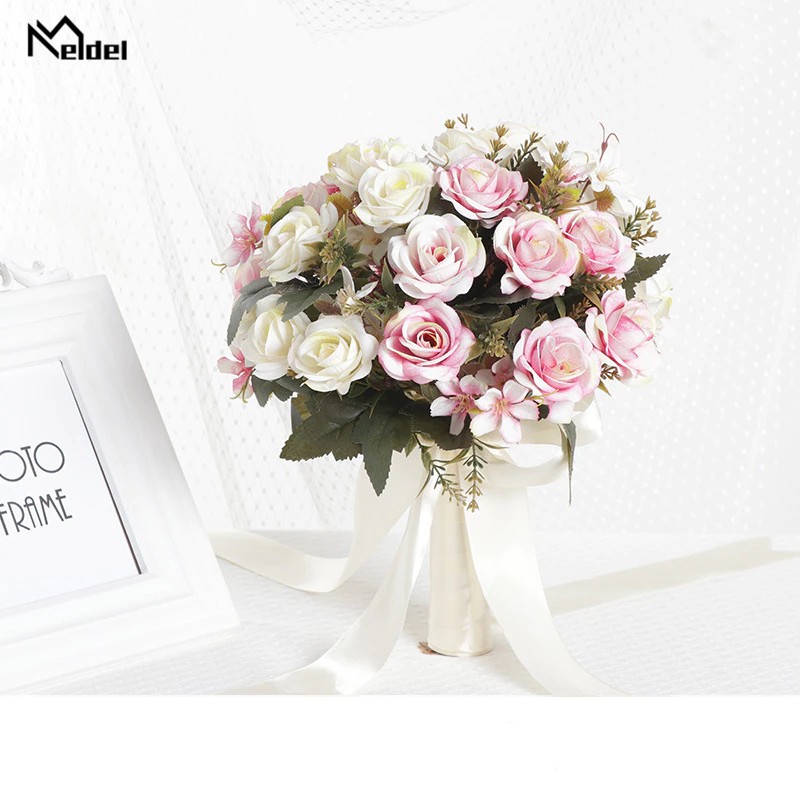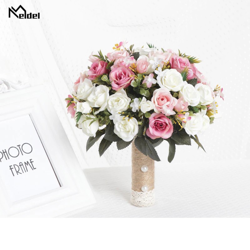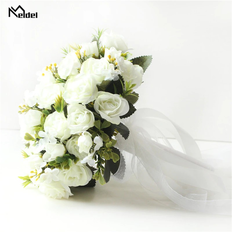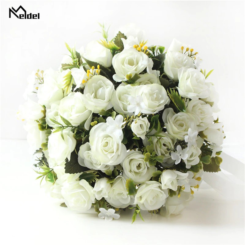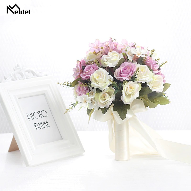 メルデル-造花のウェディングブーケ,紫と白,手作り,バラ,結婚式の装飾用