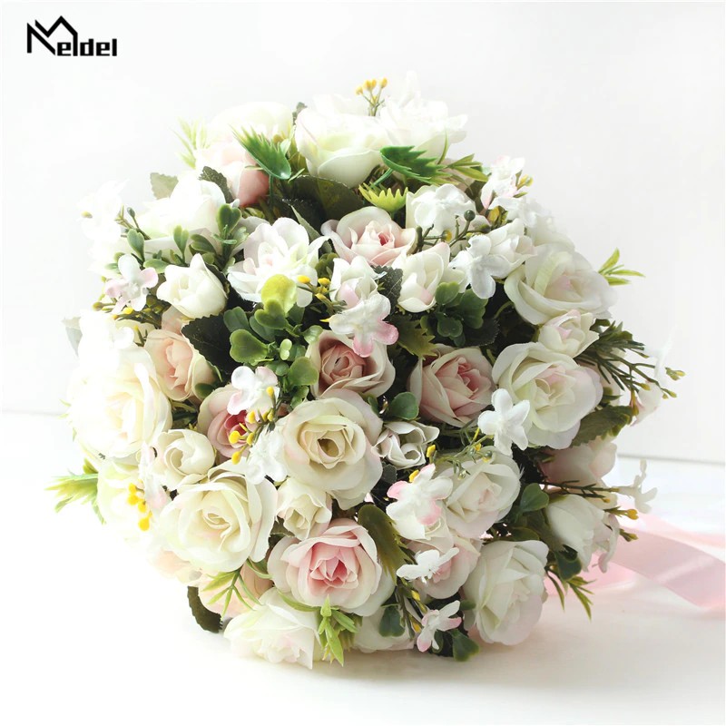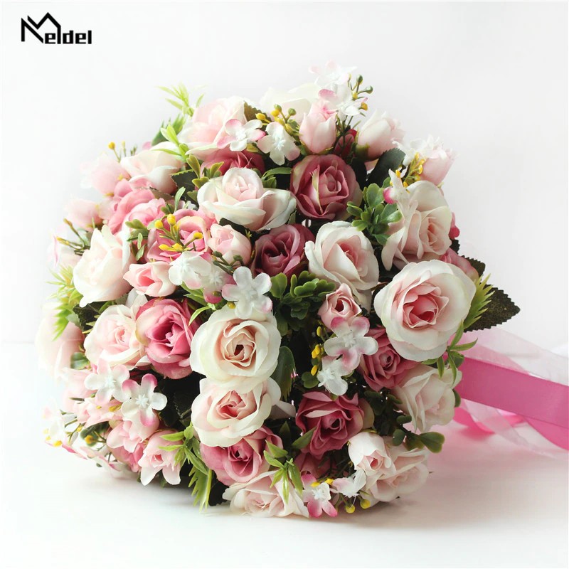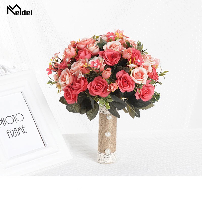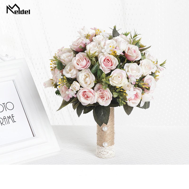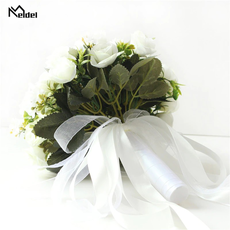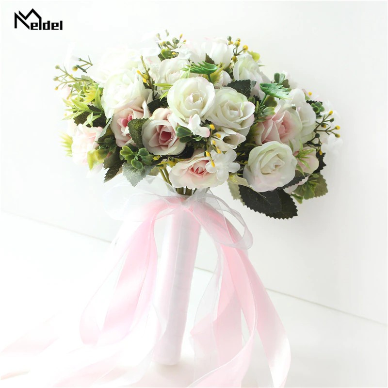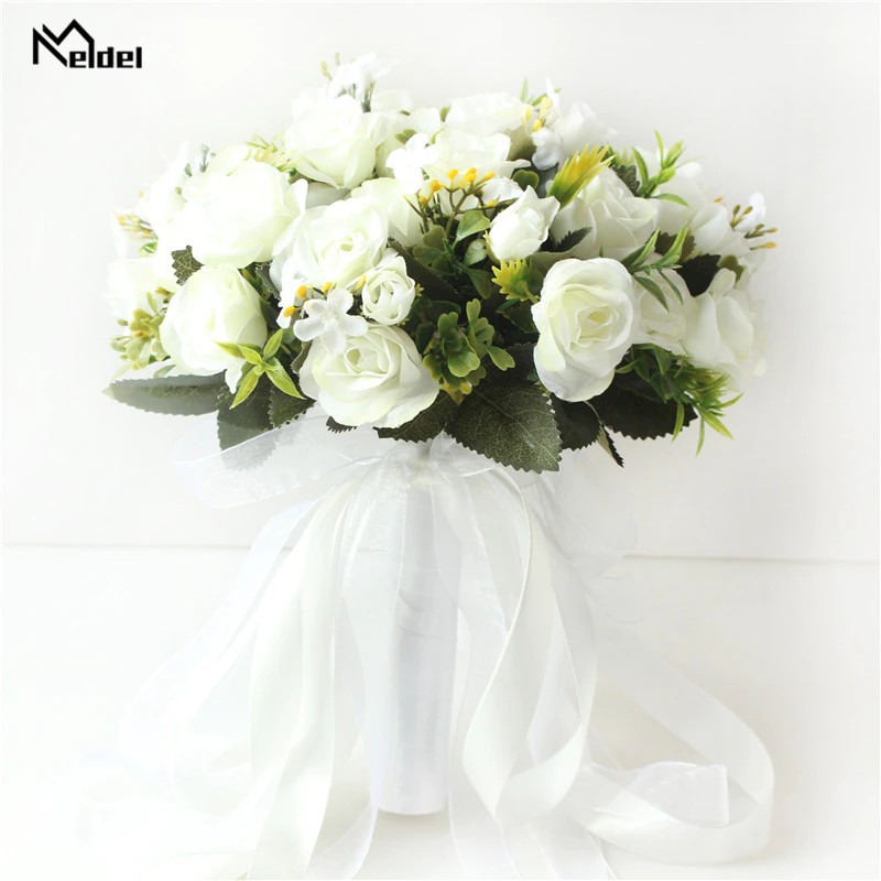 メルデル-造花のウェディングブーケ,紫と白,手作り,バラ,結婚式の装飾用