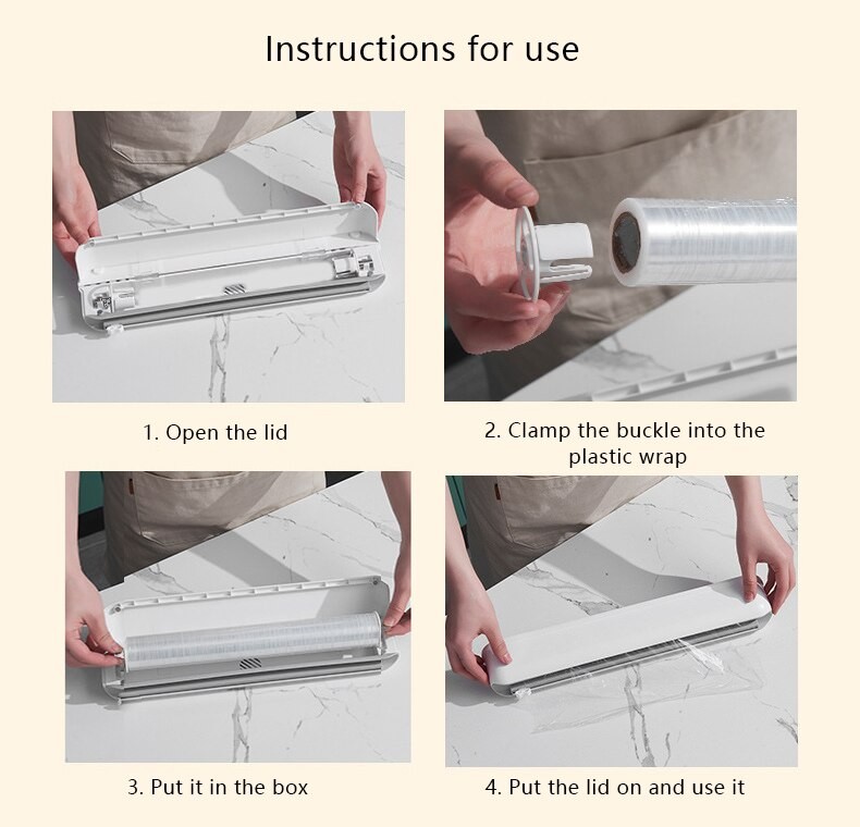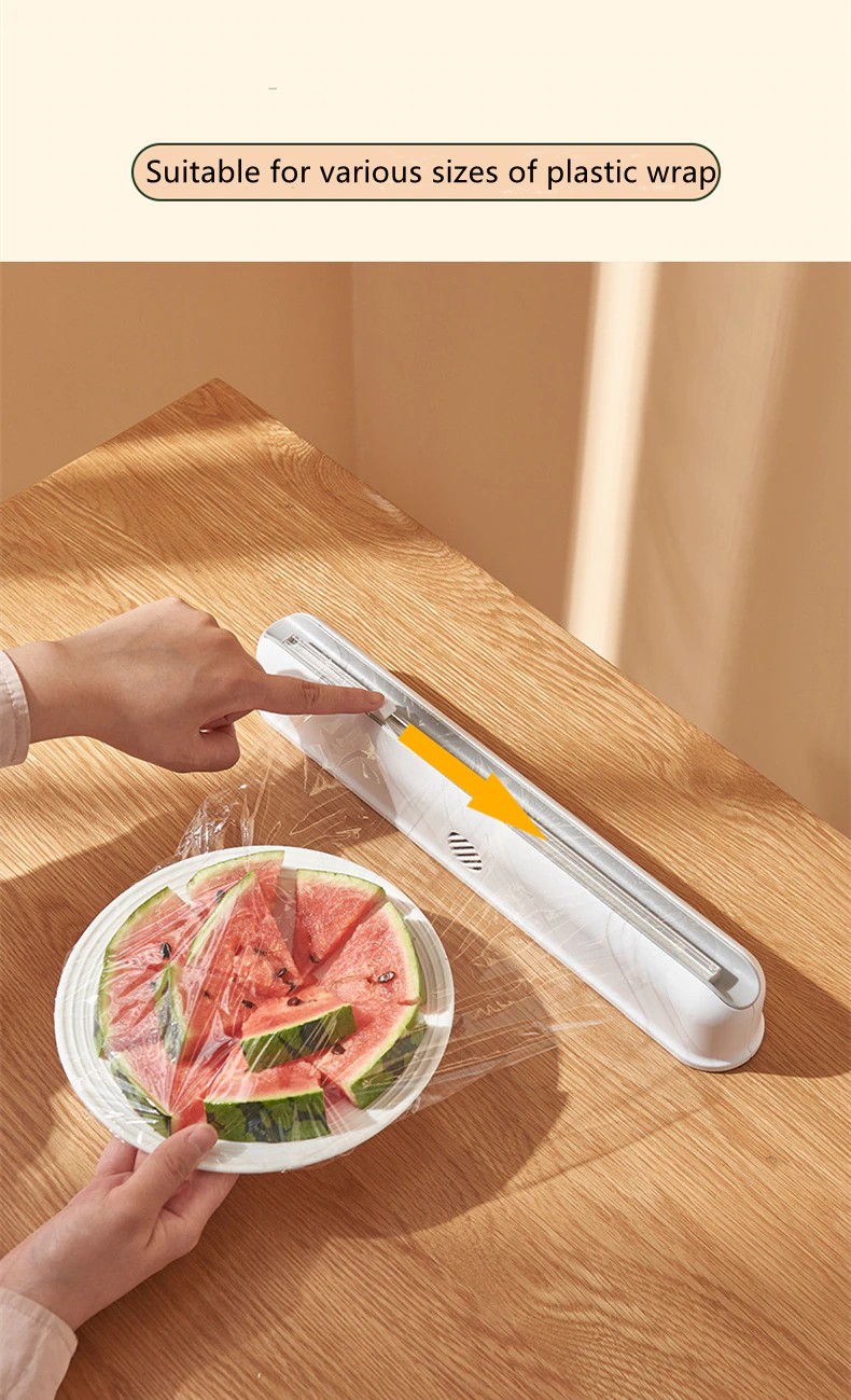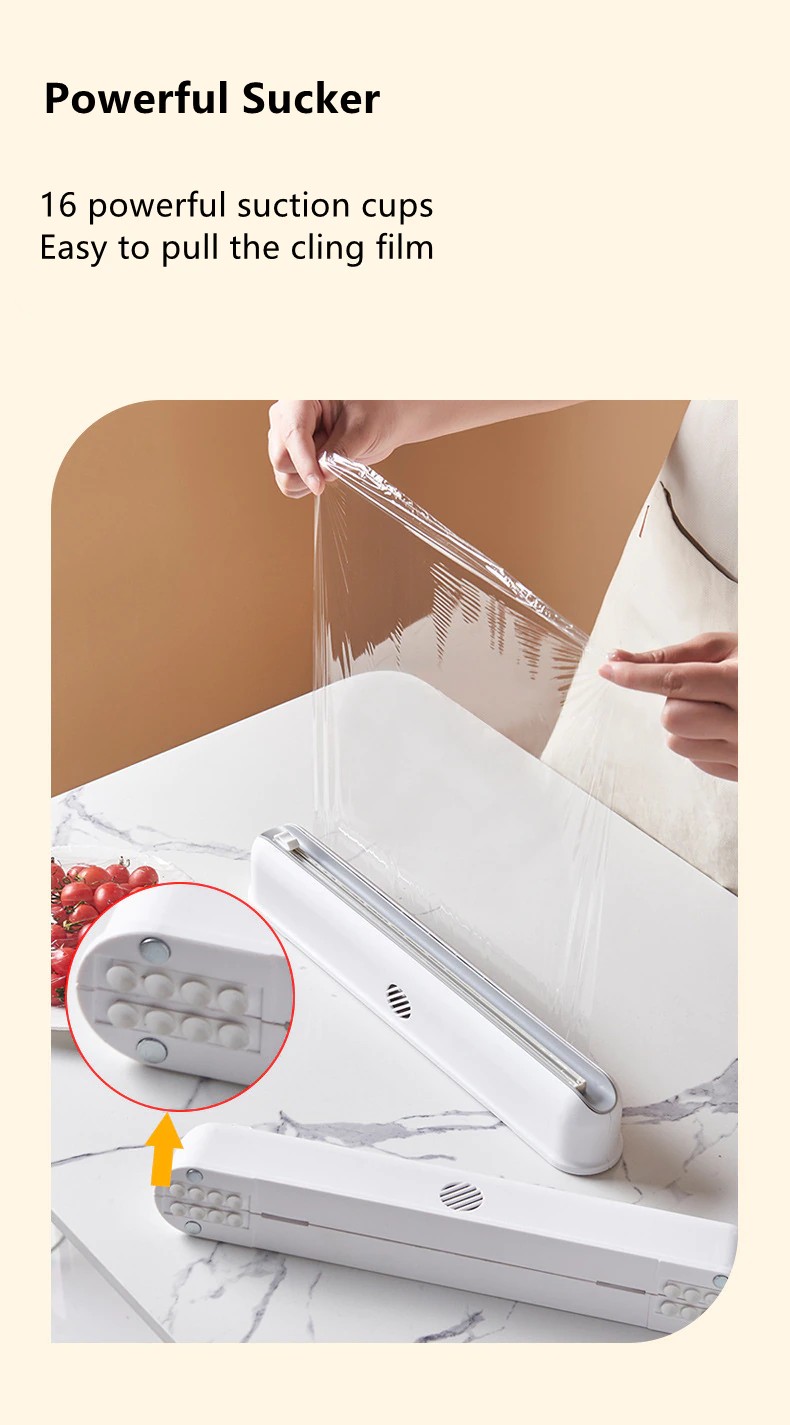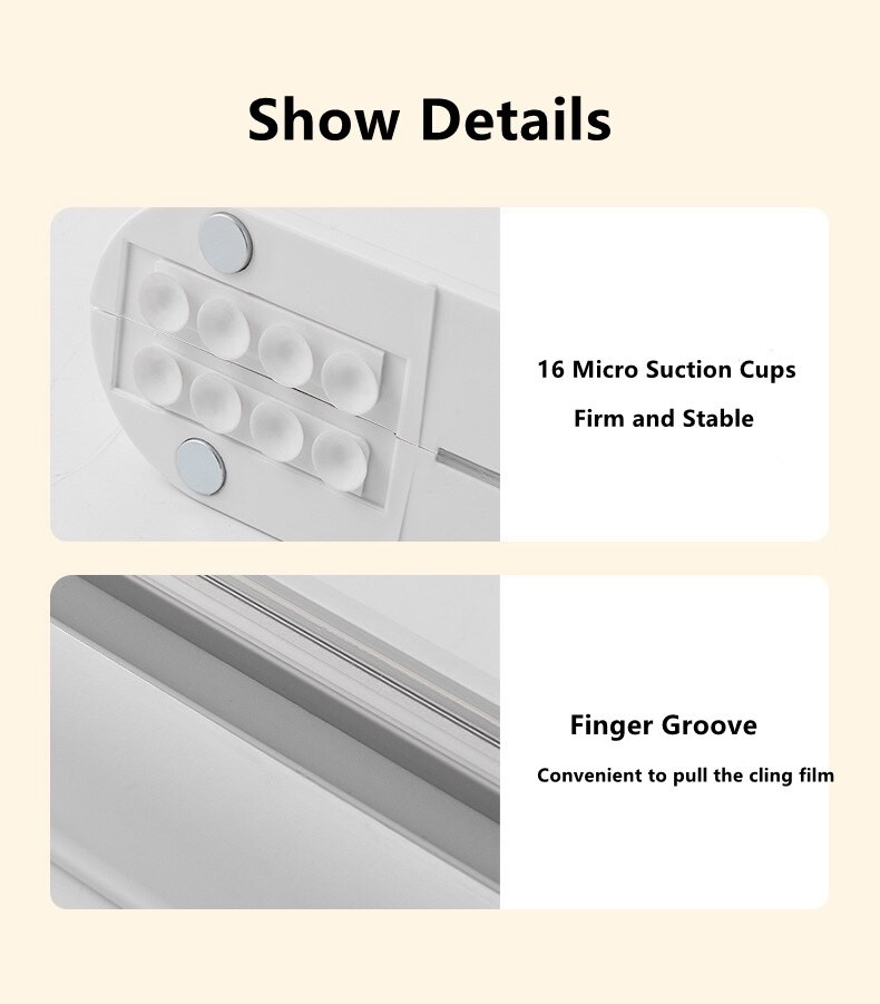 3.高品質: 腹筋素材、高温・低温耐性、耐久性、健康性、環境にやさしい、無毒、無臭。 カッターボタンを両方向にスライドさせて、必要な量のパッケージを引き出します。危険な弓のこ刃やはさみを使用せずに、左から右、または右から左にスムーズにカットできます。 小さなナイフはそれを完全に切断し、プレート上のプラスチックに折りたたまれたりくっついたりしません。 それは家庭で長い間使用することができます。 4.使いやすく、時間を節約: 弊社のディスペンサーはとても魅力的で使いやすいです。 プラスチックフィルムだけでなく、アルミホイルも切断できます。 このディスペンサーで交換できます。 スムーズに切断。 迅速かつ効率的にキッチンを準備または掃除するのに役立ちます。 99% の時間を完璧に削減することもできます。 さらに、キッチンの引き出しに簡単に入れることができます。 このディスペンサーの底にある16個の吸盤はよく機能します-キッチンカウンター、滑らかなテーブルトップ、冷蔵庫などを固定できます。仕様: サイズ: 38.5*5.6*6.5cm。